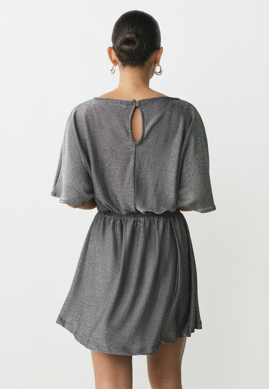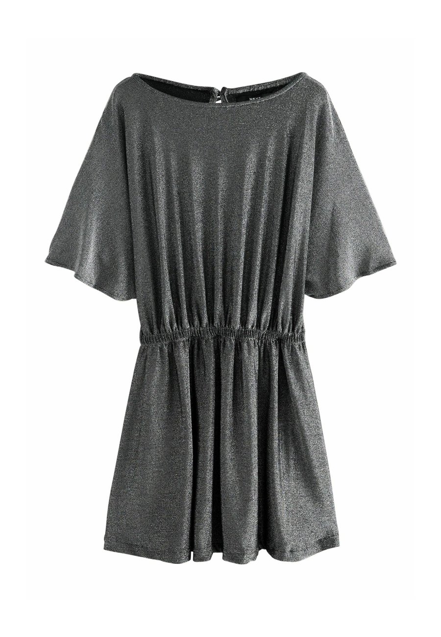 Мини-платье с рукавами-крылышками и блестками. Высокий стандартный крой. Вырез: лодочка.Материал и уход