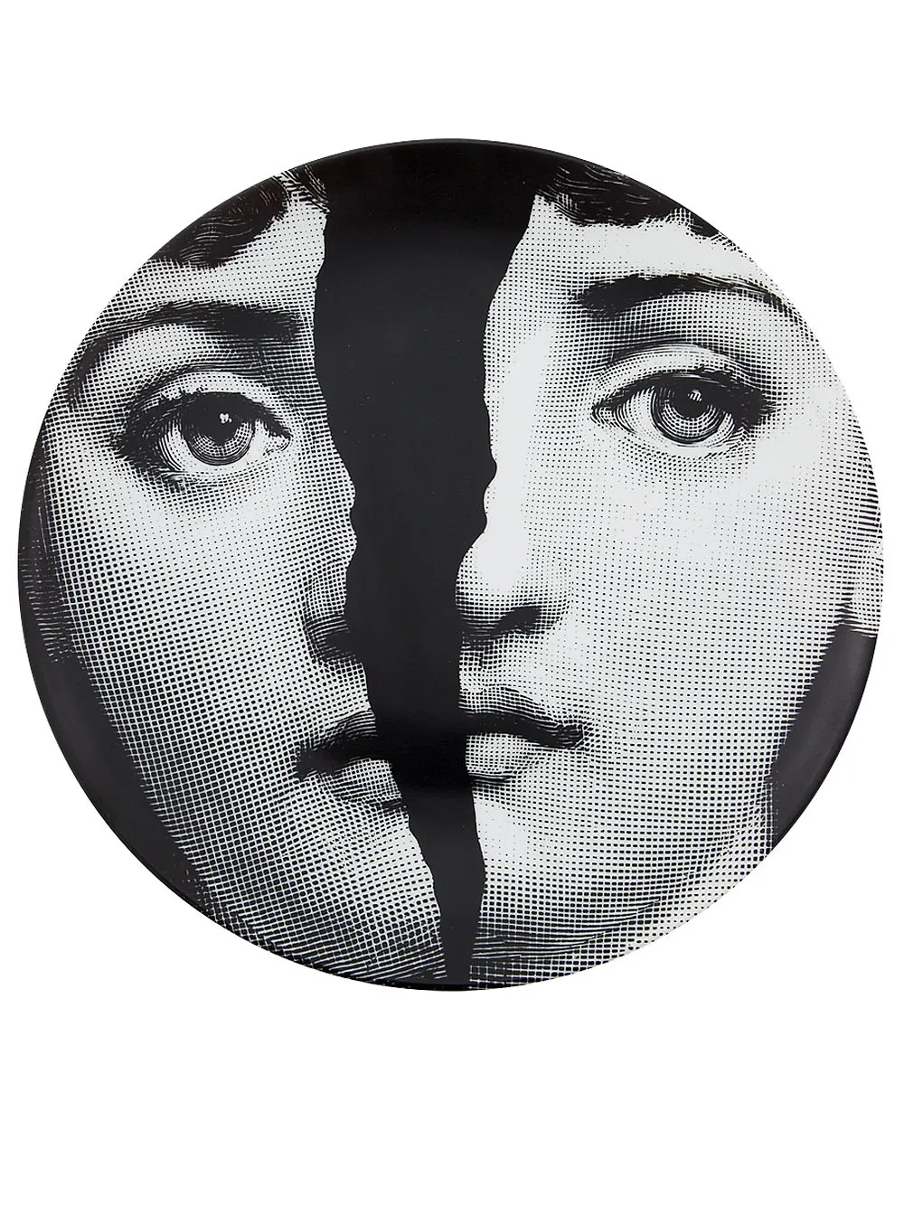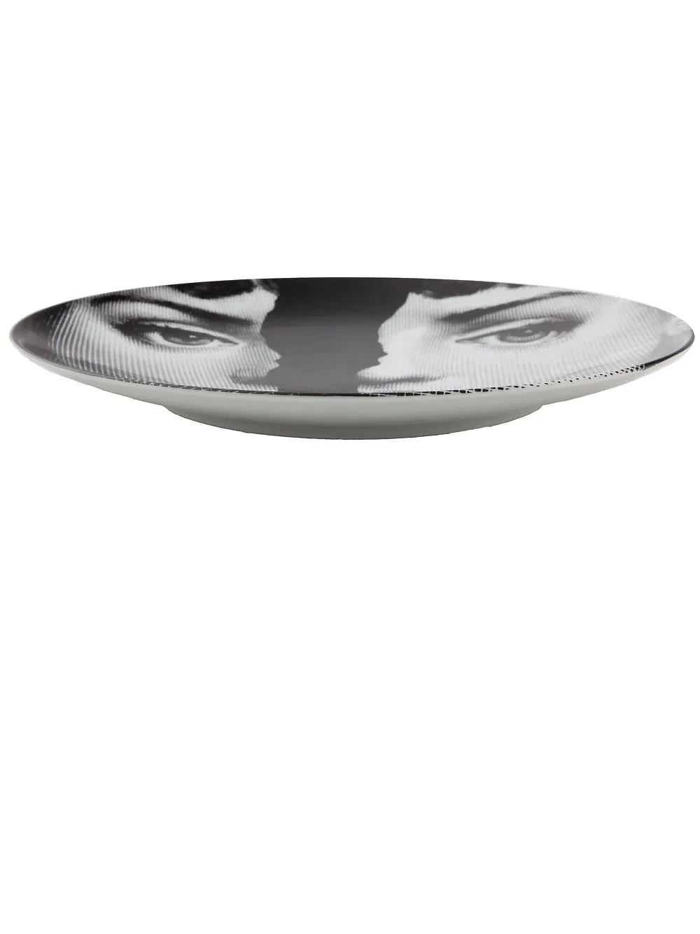 Черно-белая фарфоровая тарелка с принтом от Fornasetti.