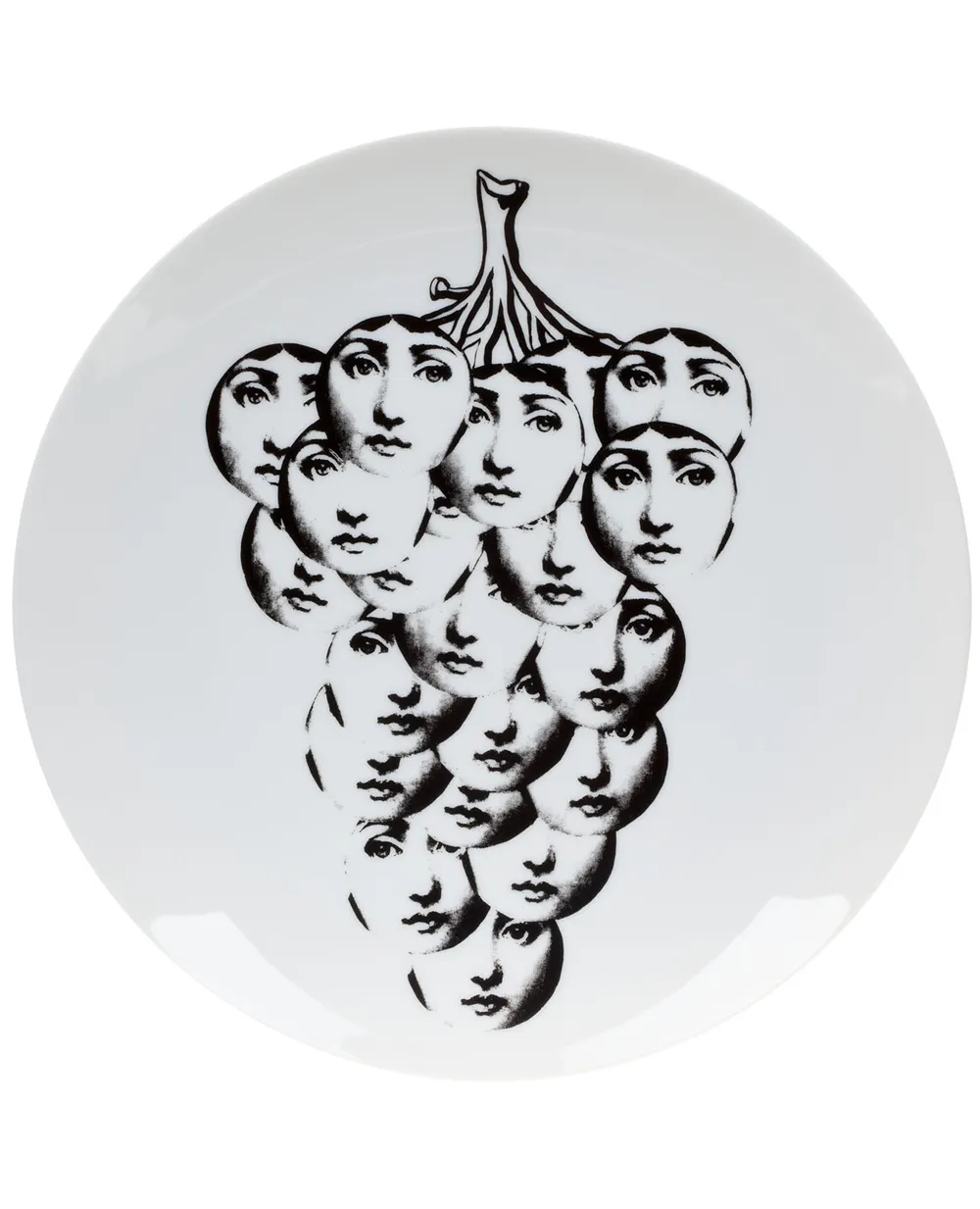 Черно-белая фарфоровая тарелка с принтом винограда от Fornasetti.