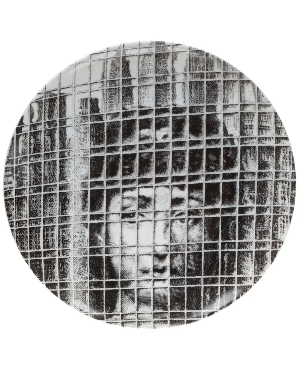 Черно-белая фарфоровая тарелка с принтом от Fornasetti.