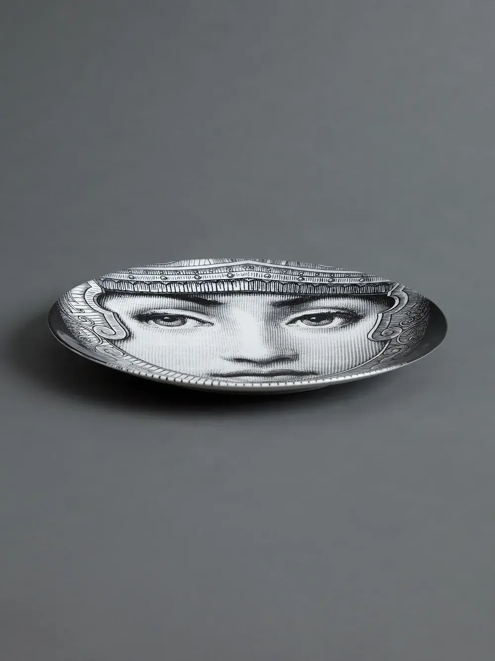 Чёрно-белая фарфоровая тарелка от Fornasetti.