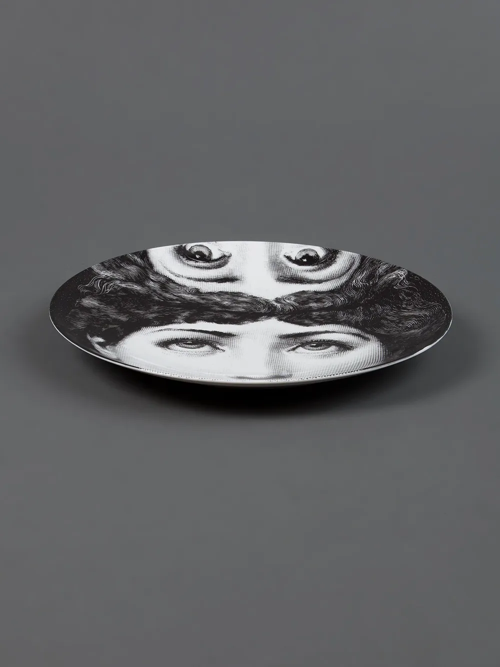 Чёрно-белая фарфоровая тарелка с рисунком от Fornasetti.
