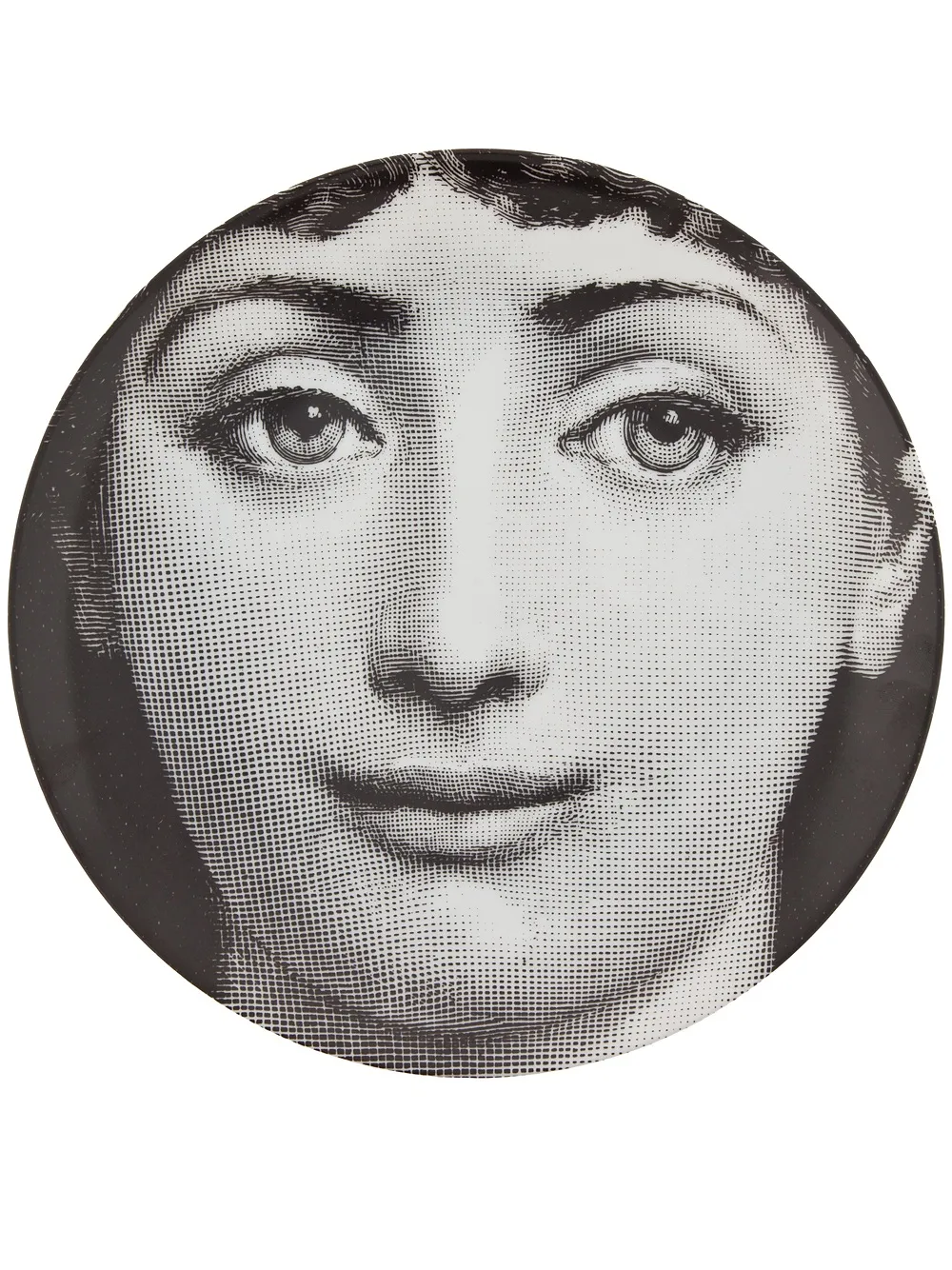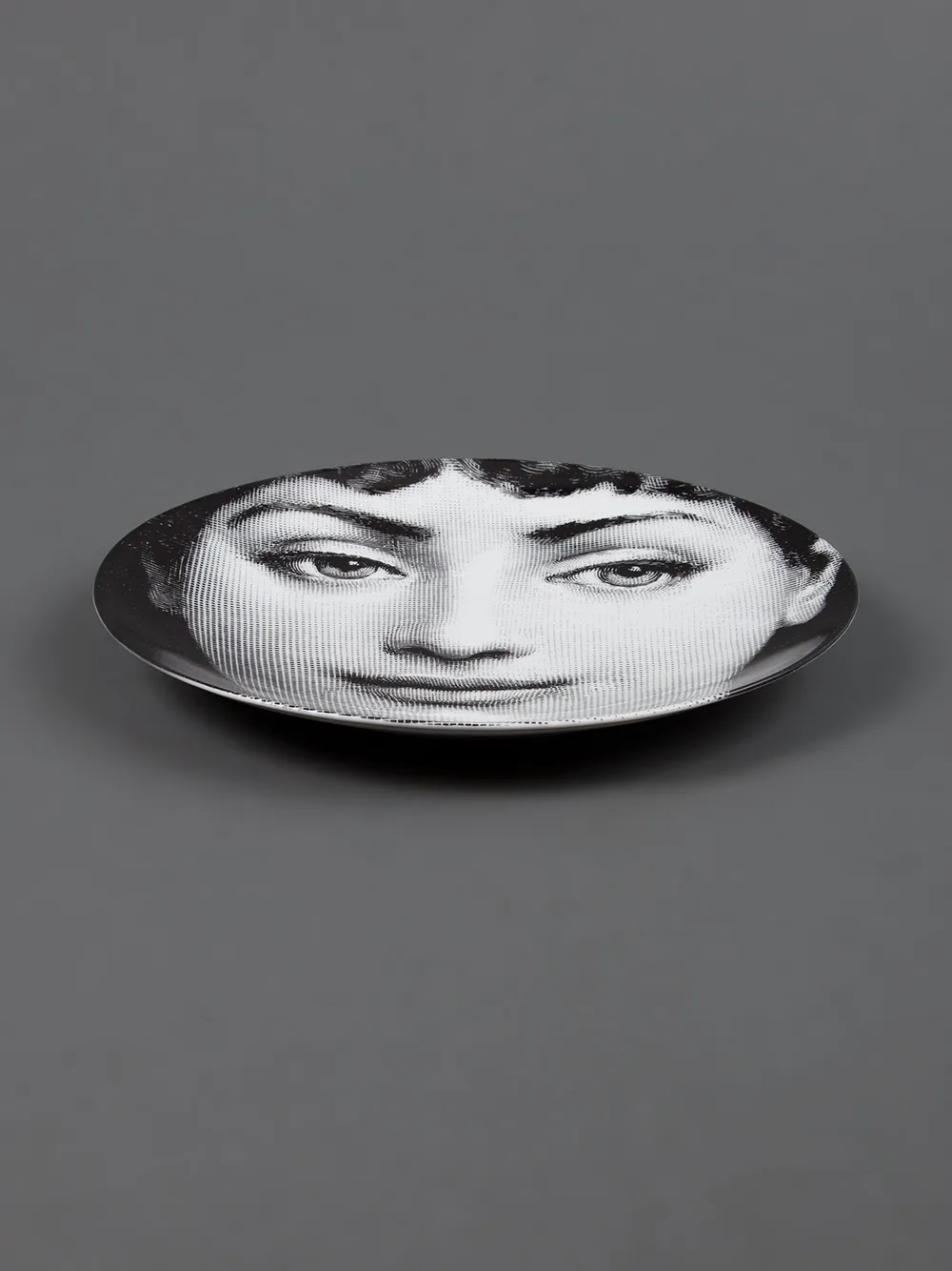 Белая с чёрным керамическая тарелка с рисунком от Fornasetti.