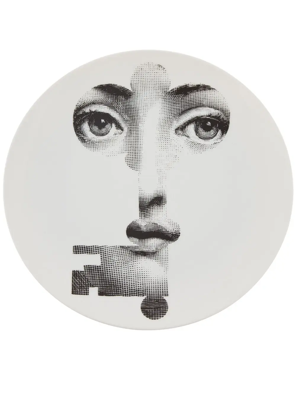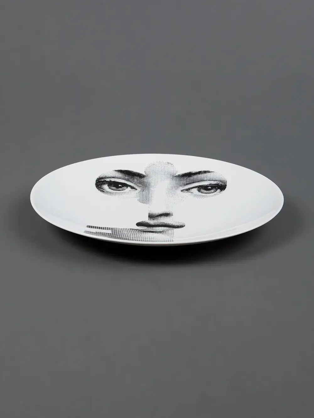 Чёрно-белая фарфоровая тарелка с рисунком от Fornasetti.
