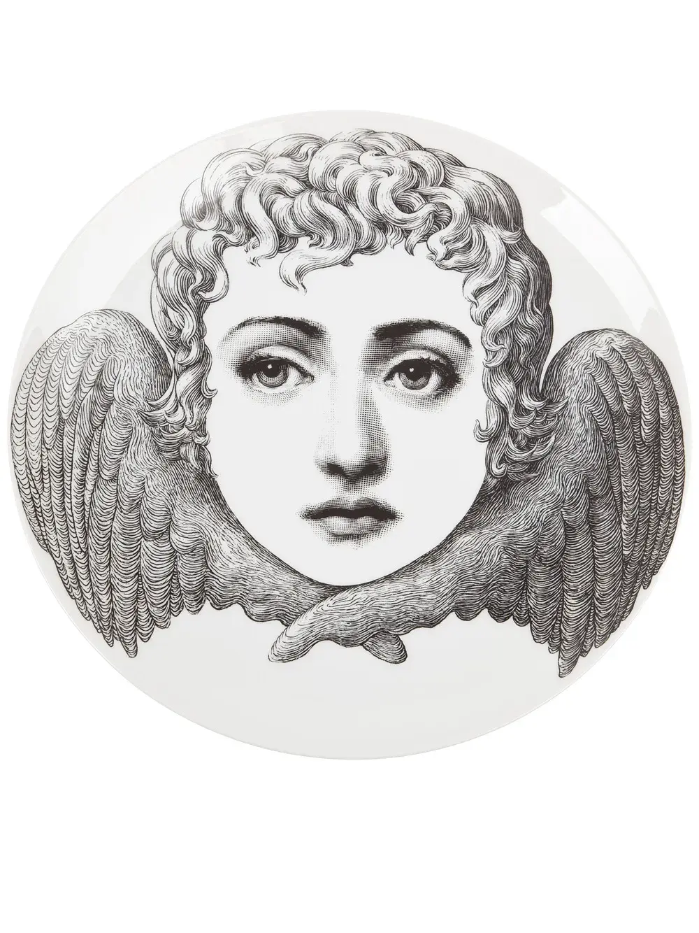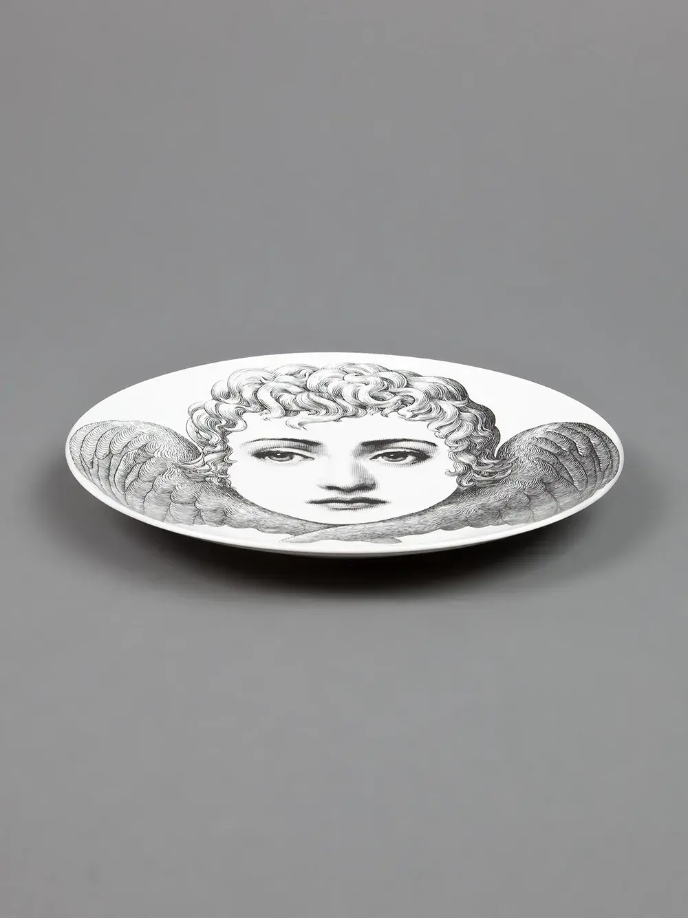 Белая с серым керамическая тарелка с рисунком от Fornasetti.