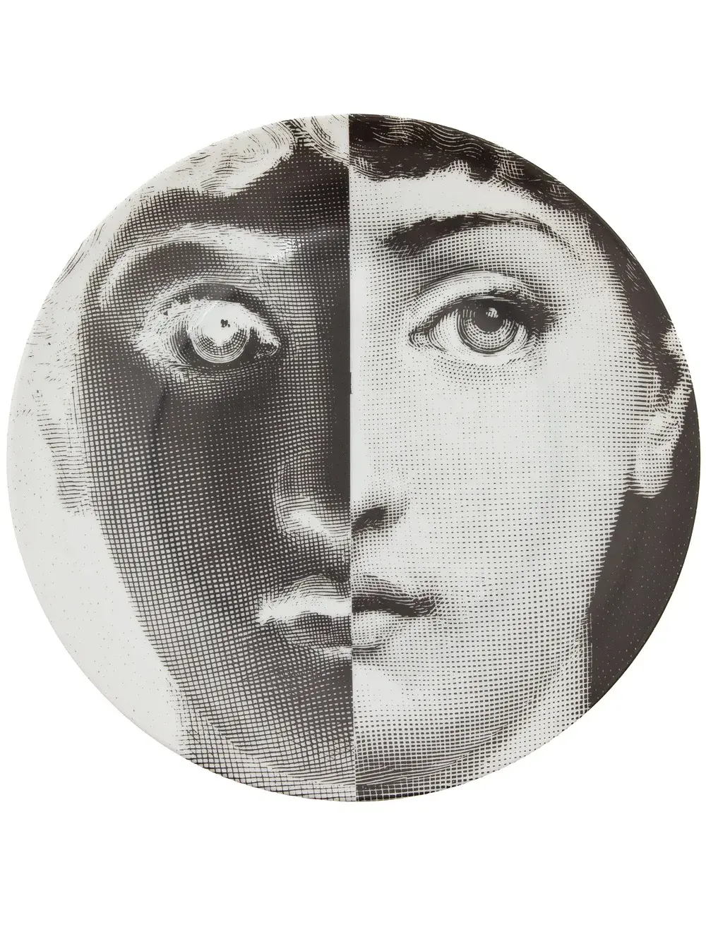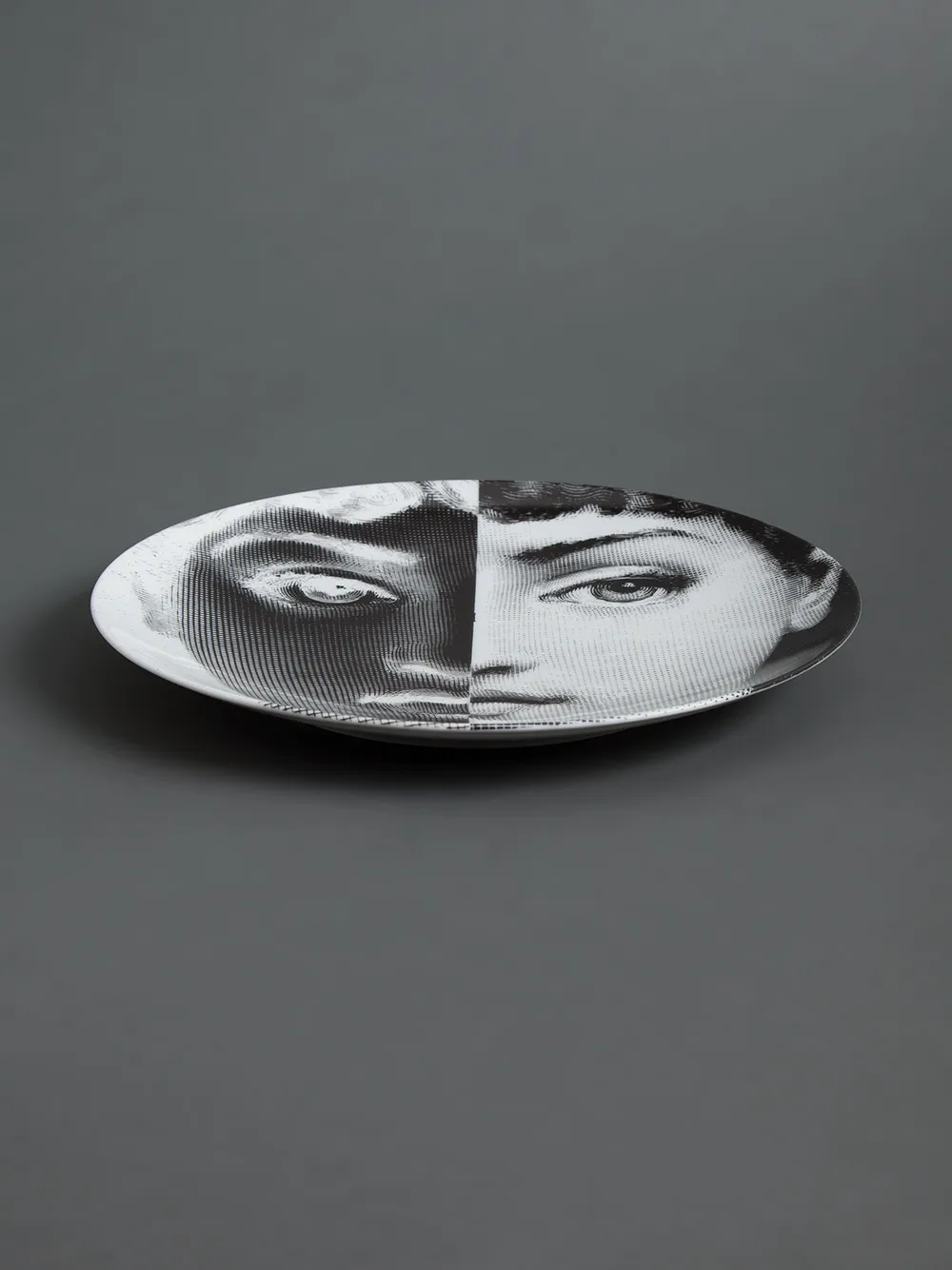 Серая с белым керамическая тарелка с рисунком от Fornasetti.