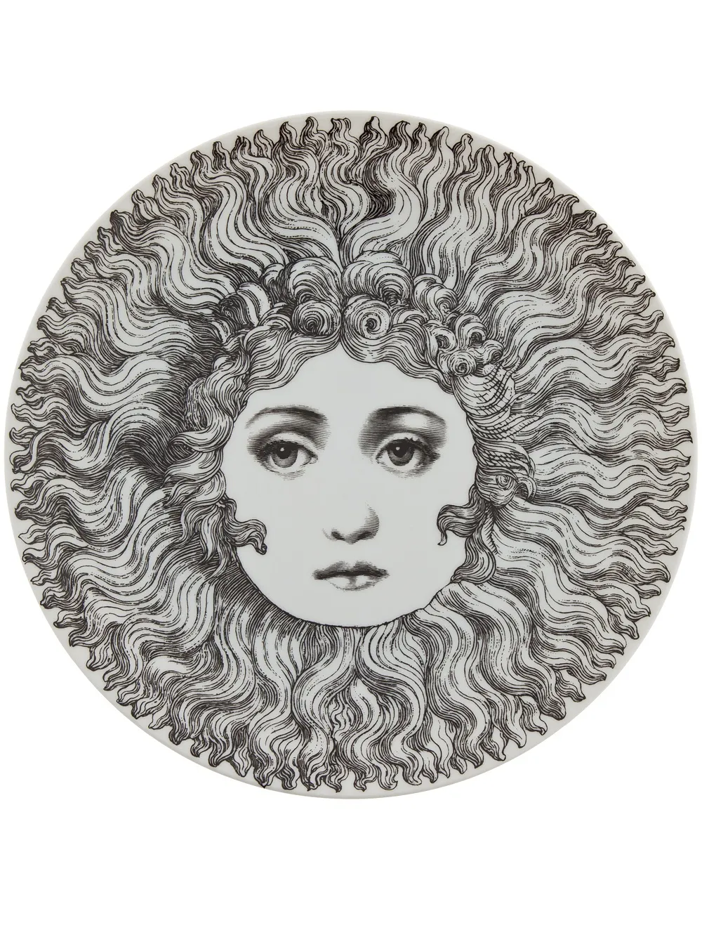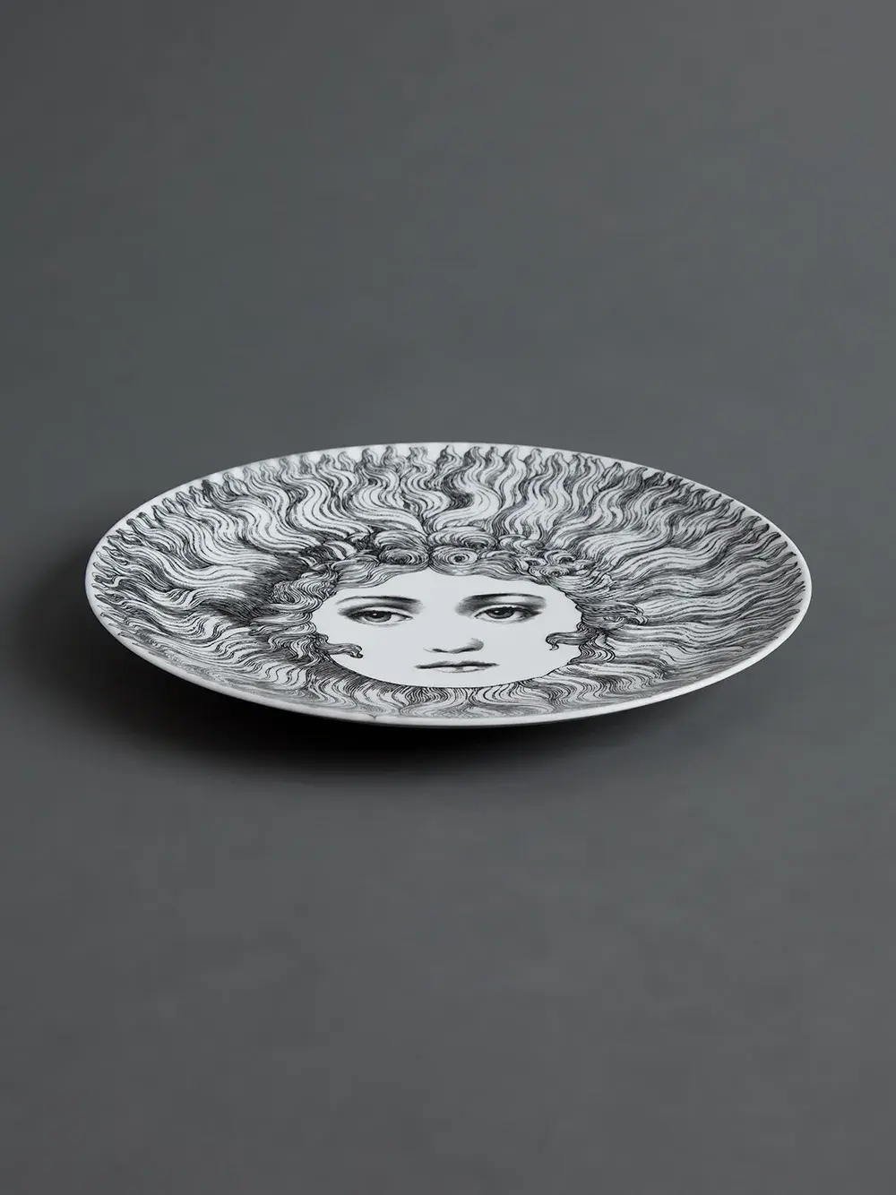Серая с белым керамическая тарелка с рисунком от Fornasetti.
