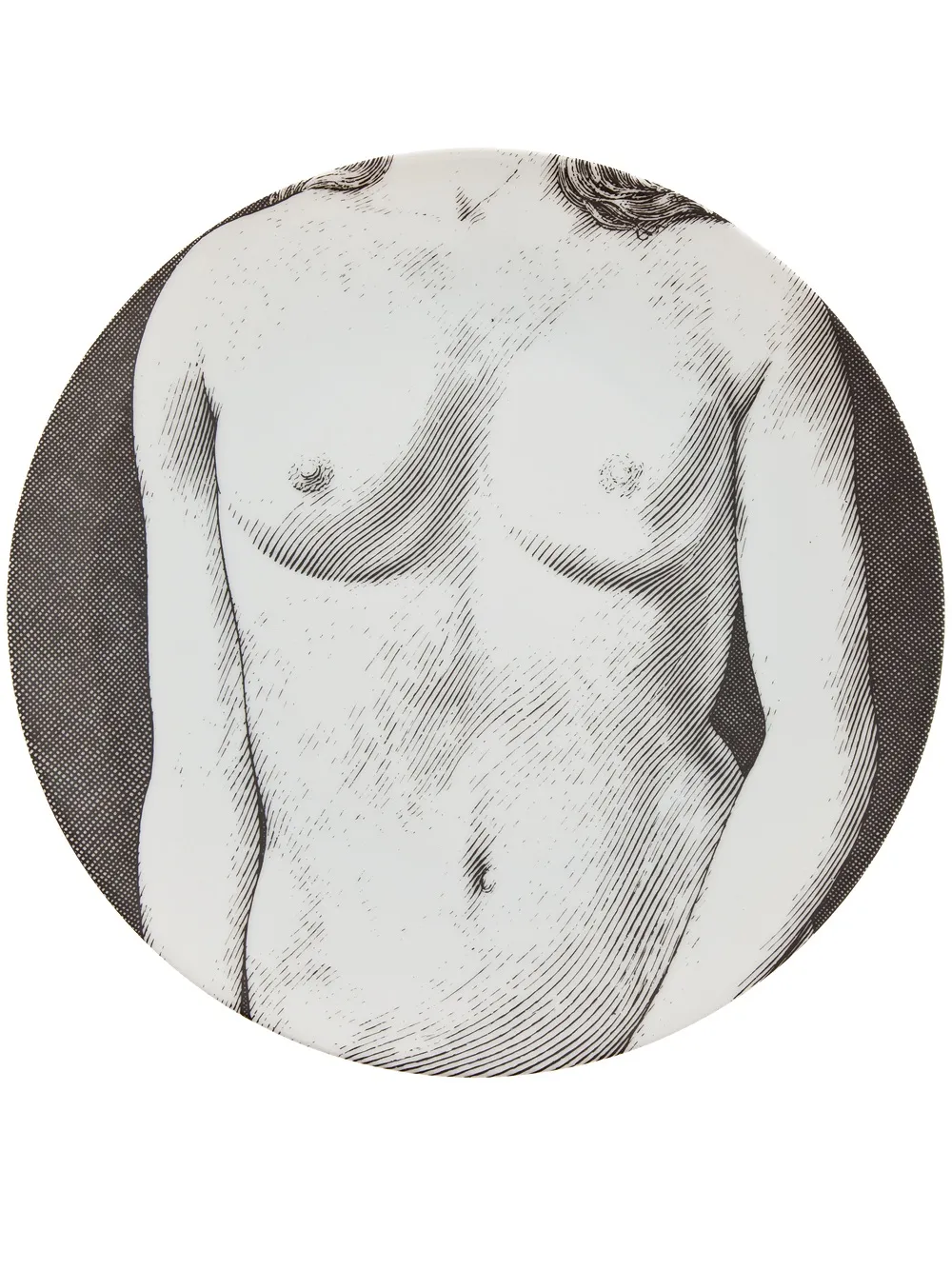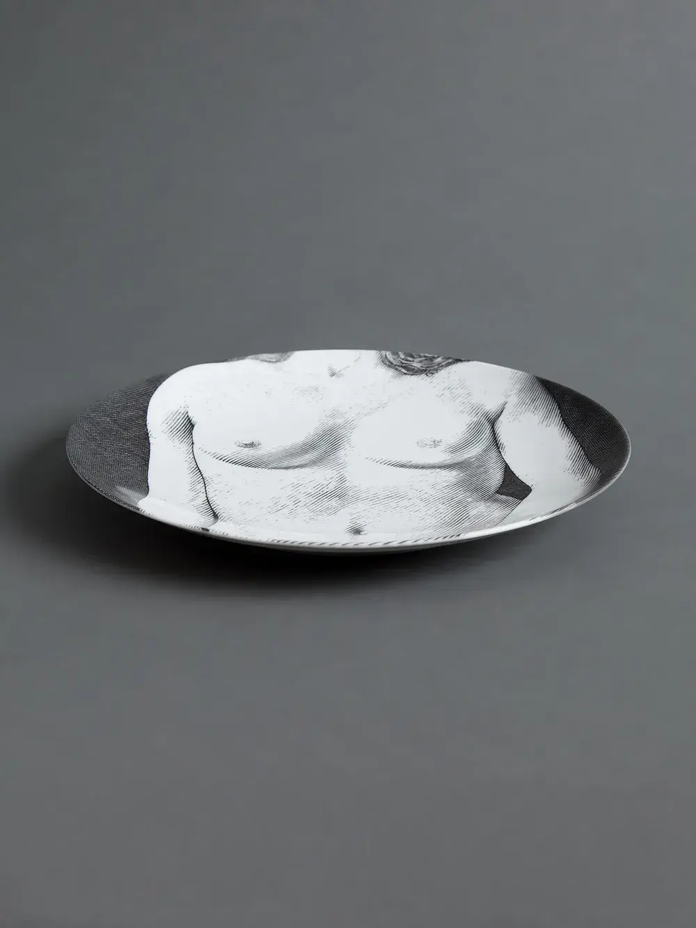 Серая с белым керамическая тарелка с рисунком от Fornasetti.