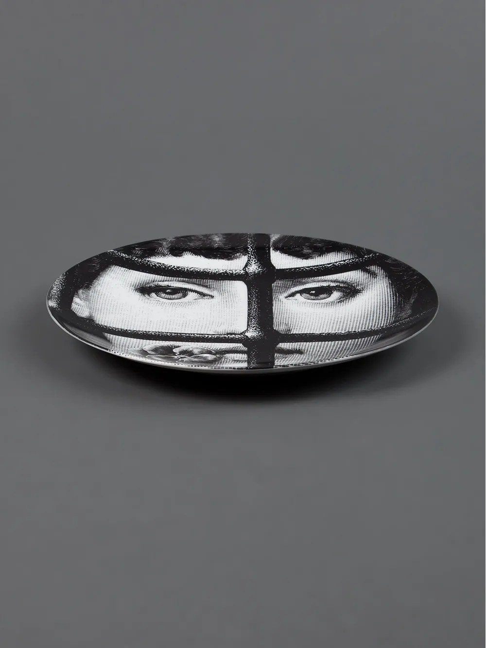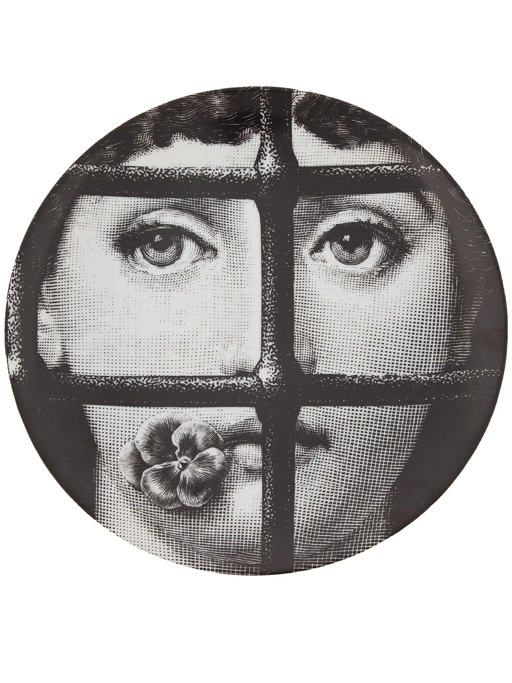 Чёрно-белая фарфоровая тарелка с принтом от Fornasetti.