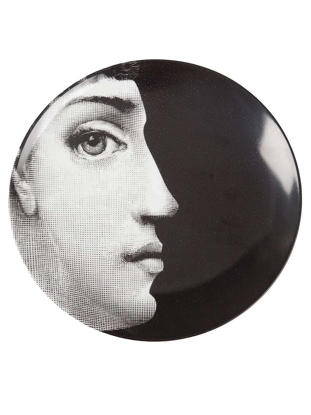 Черно-белая керамическая тарелка с принтом от Fornasetti.