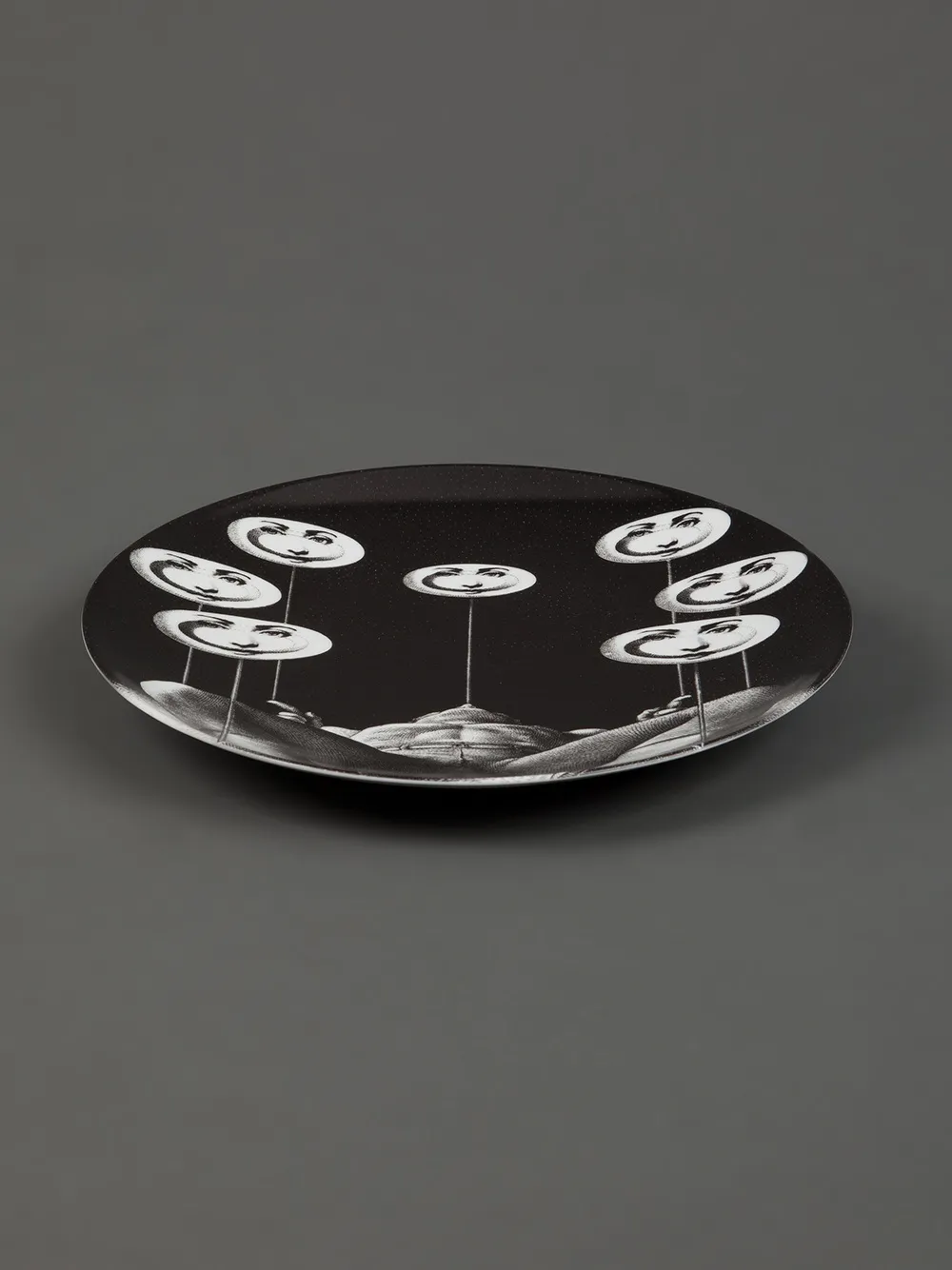 Черно-белая керамическая тарелка с принтом от Fornasetti.