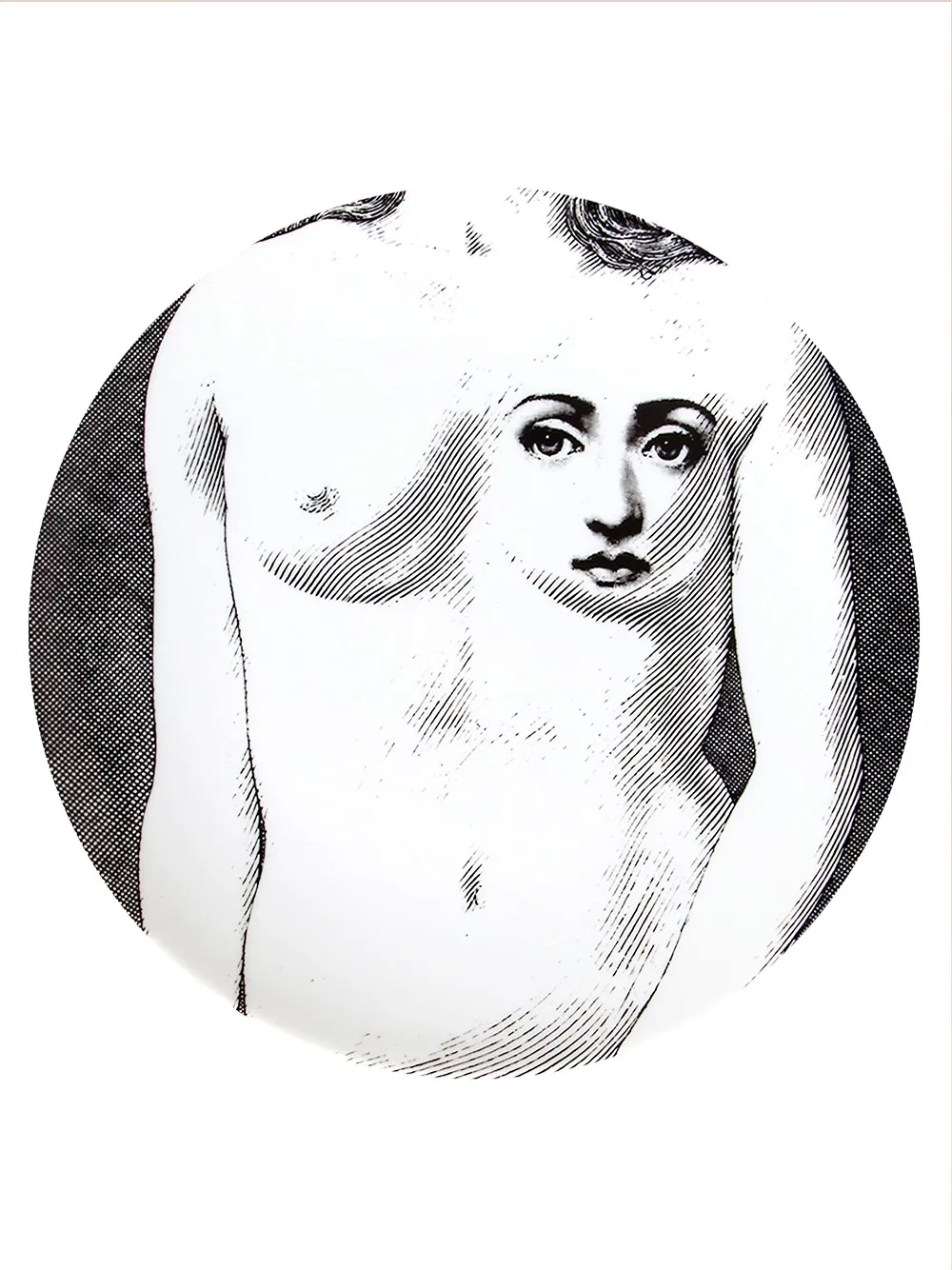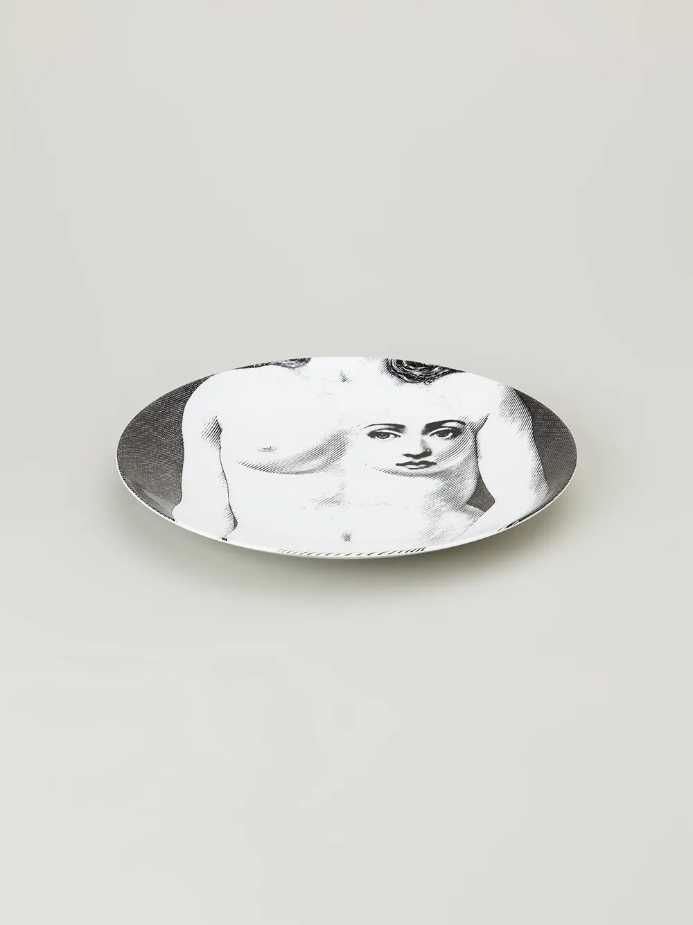 Черно-белая керамическая тарелка с принтом от Fornasetti.