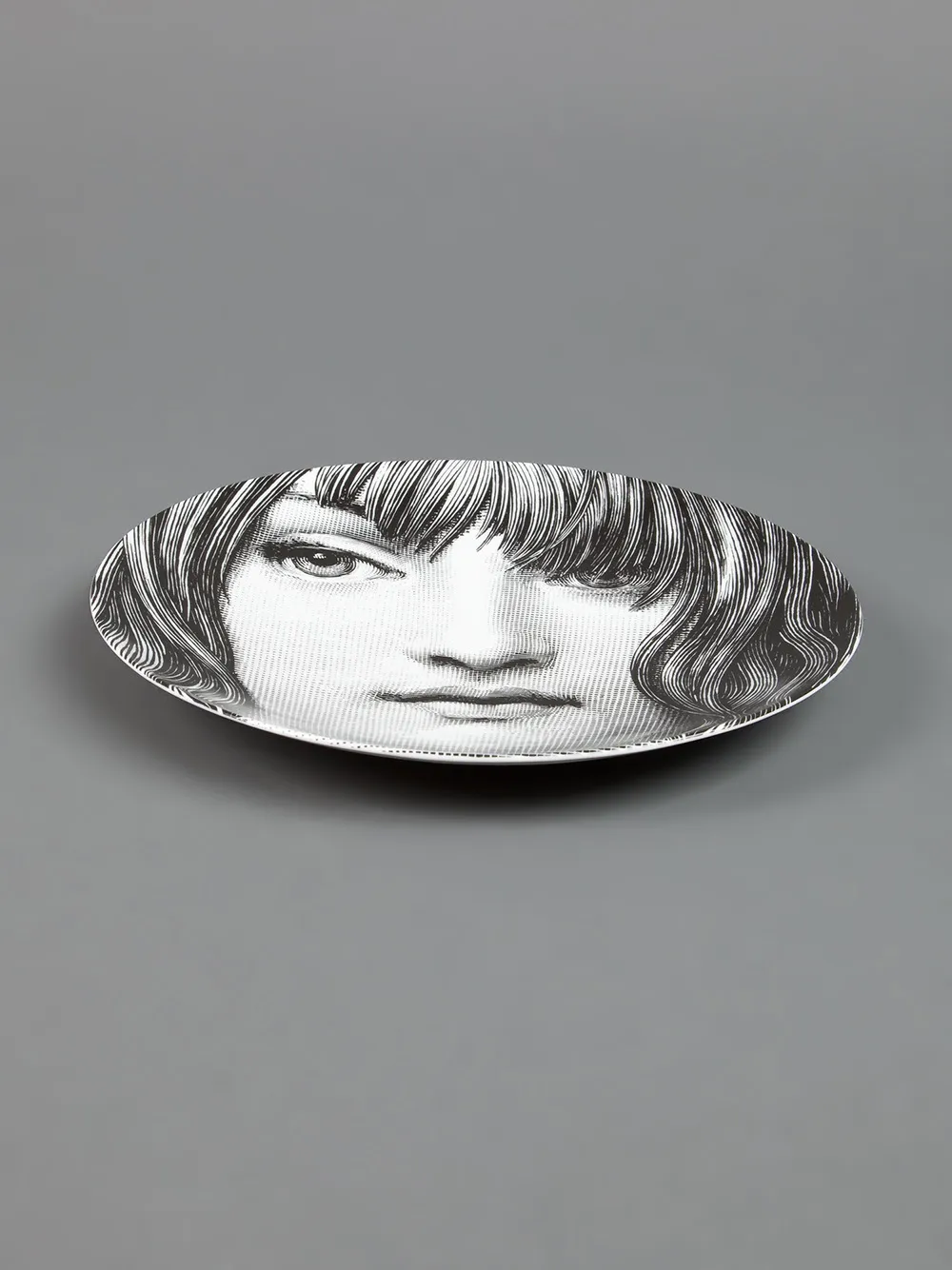 Белая керамическая тарелка с серым принтом от Fornasetti.
