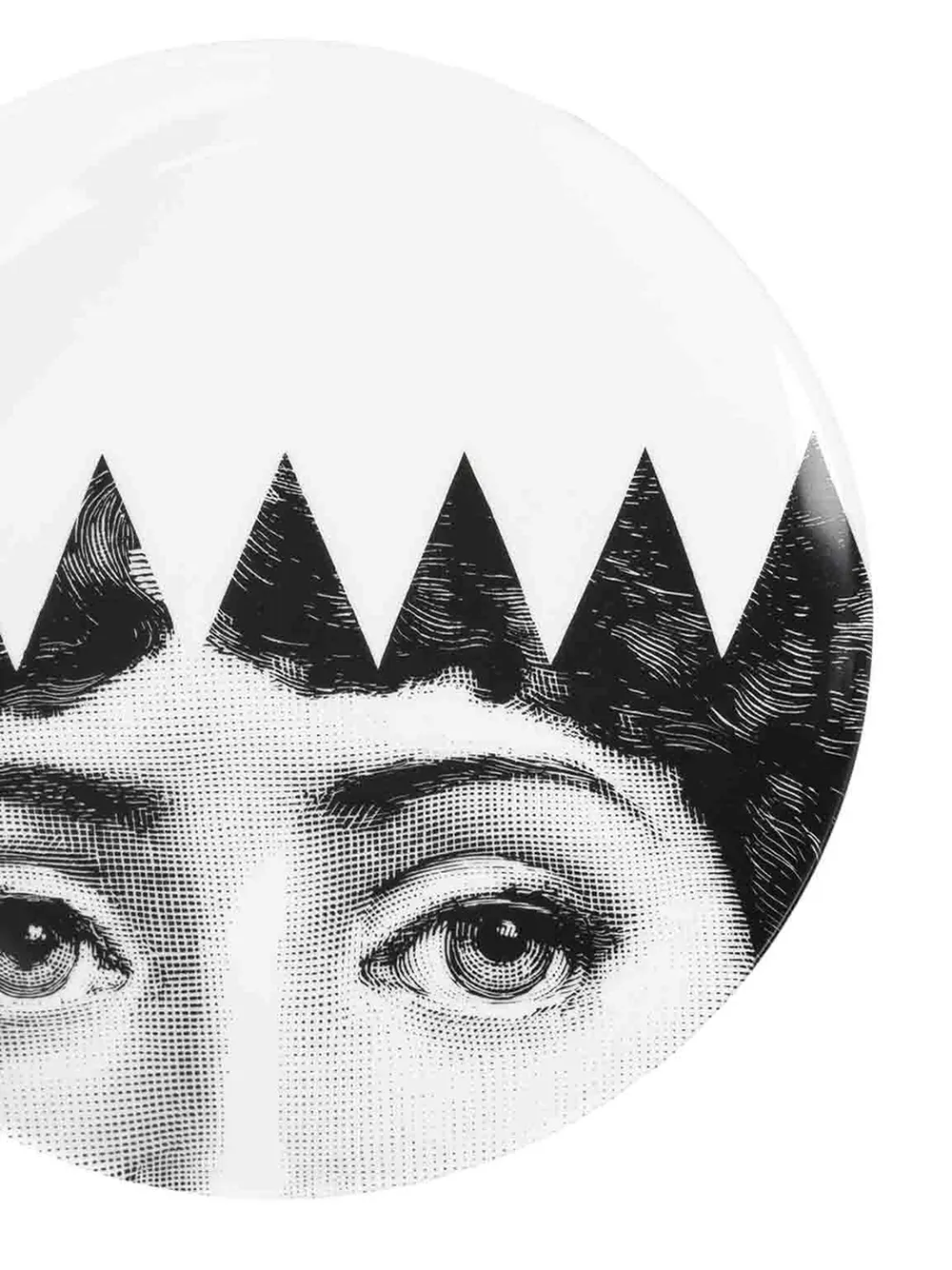 Черная с белым керамическая тарелка с принтом лица от Fornasetti.
