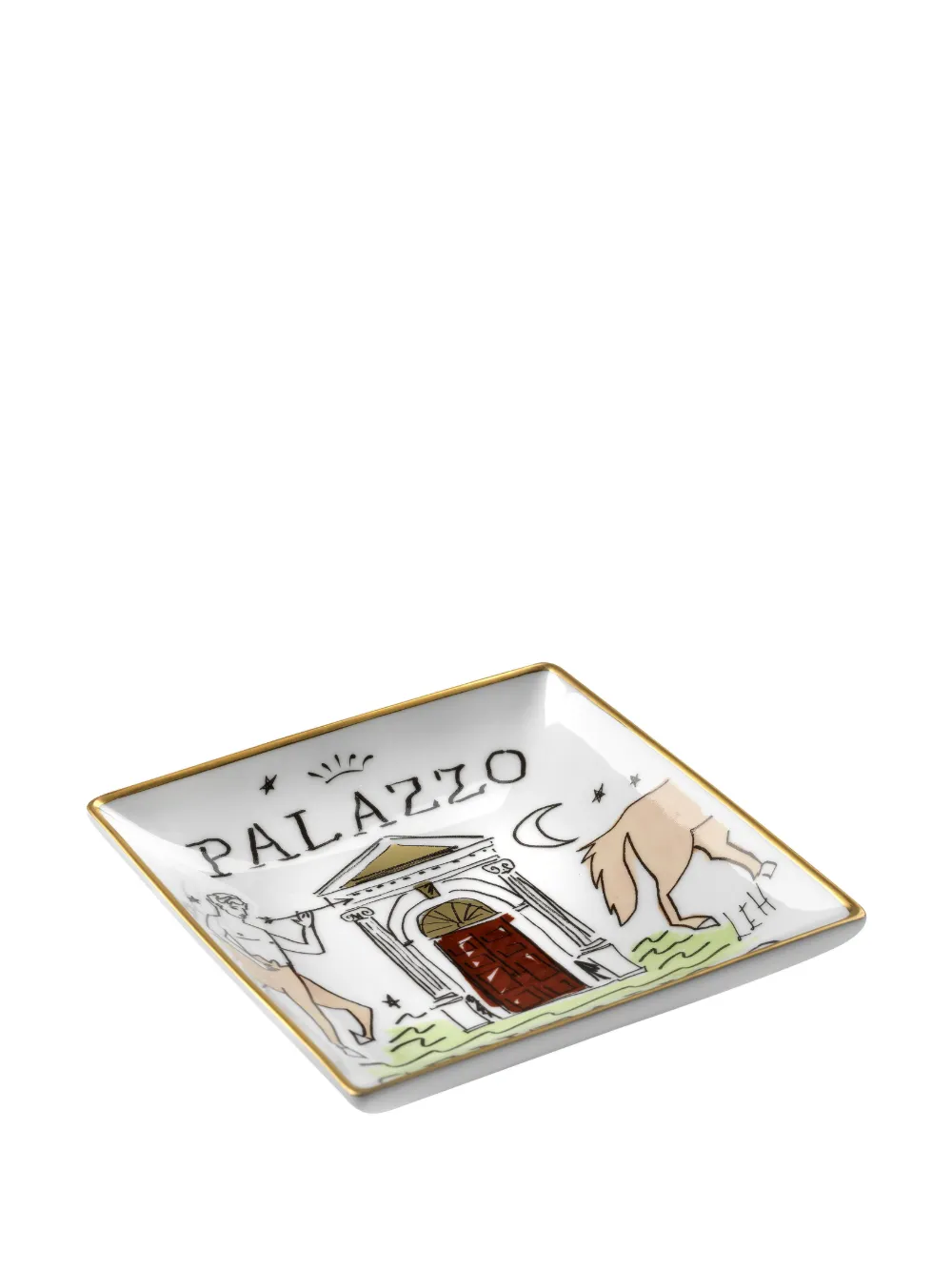 Белый/разноцветный, фарфор, глазурованное покрытие, принт-иллюстрация, квадратная форма и контрастные края.