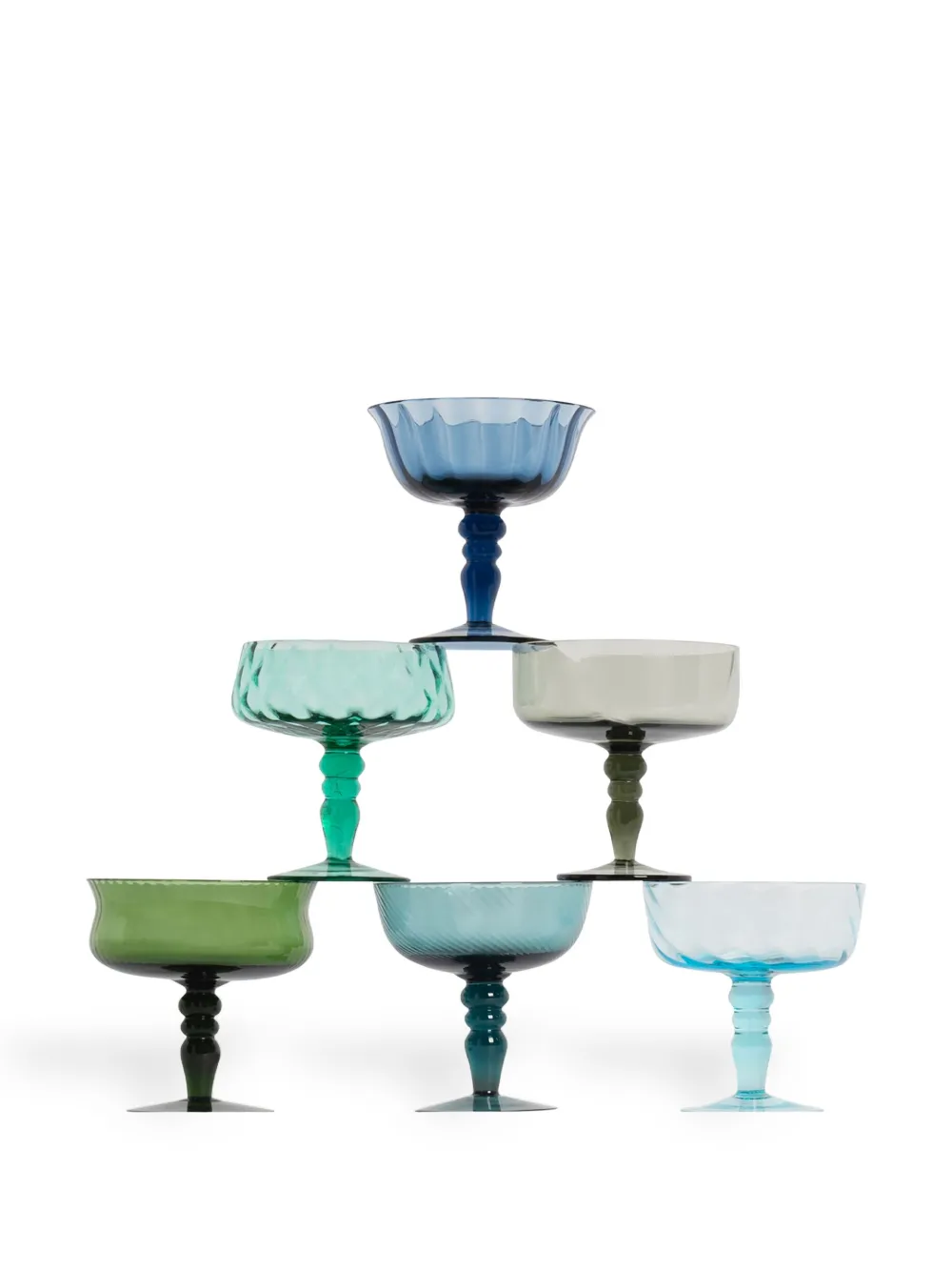 Разноцветный, стекло, прозрачный материал, фактурная отделка, дизайн с открытым верхом, подходит для мытья в посудомоечной машине и набор из шести предметов.