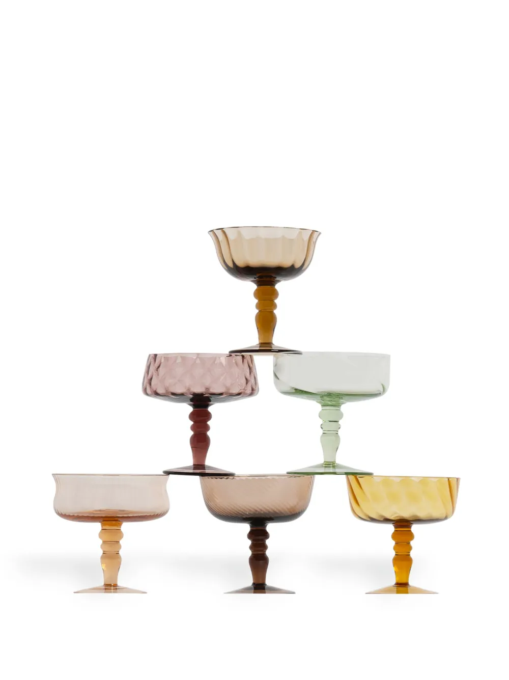 Разноцветный, стекло, прозрачный материал, фактурная отделка, дизайн с открытым верхом, подходит для мытья в посудомоечной машине и набор из шести предметов.