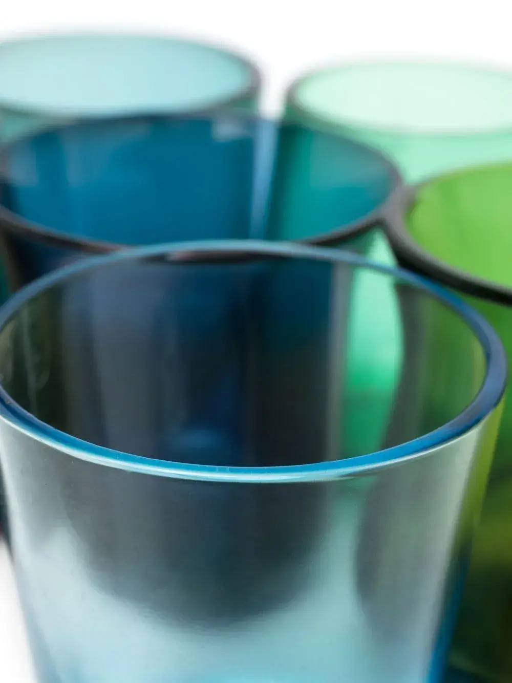 Синий, зеленый, стекло, подходит для мытья в посудомоечной машине и набор из шести предметов. Внешний вид вещей в комплекте различается - это часть дизайна.