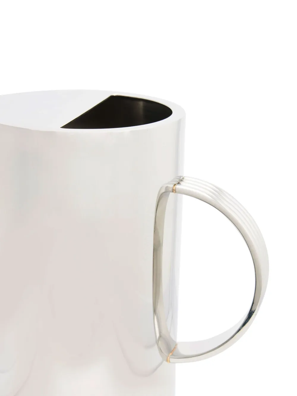 Серебристый, нержавеющая сталь, детали в рубчик, глянцевая фактура, цилиндрический дизайн, дизайн с открытым верхом и круглая ручка.