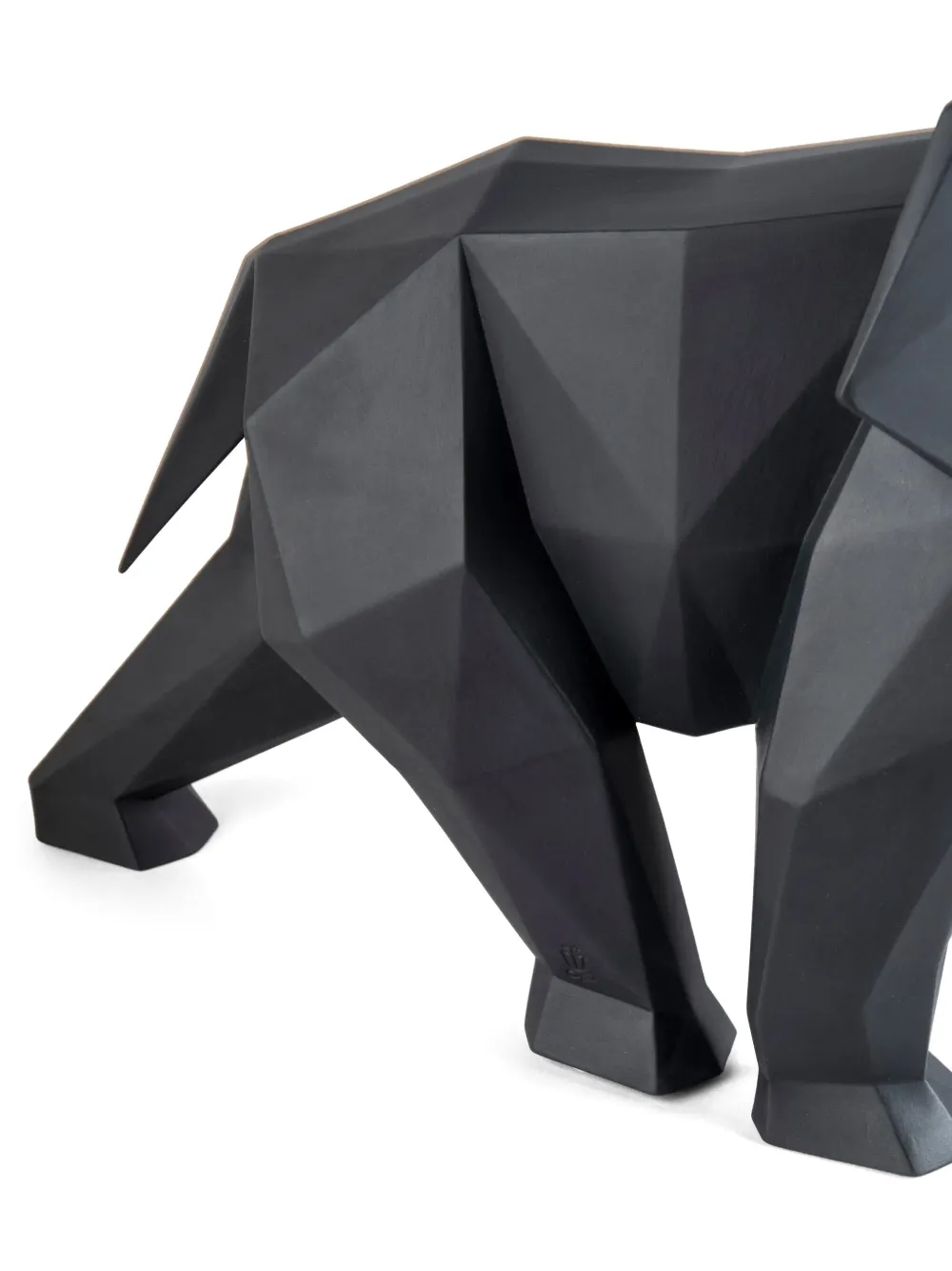Черный, фарфор, матовое покрытие, глаза из твердого материала и скульптурный каблук.