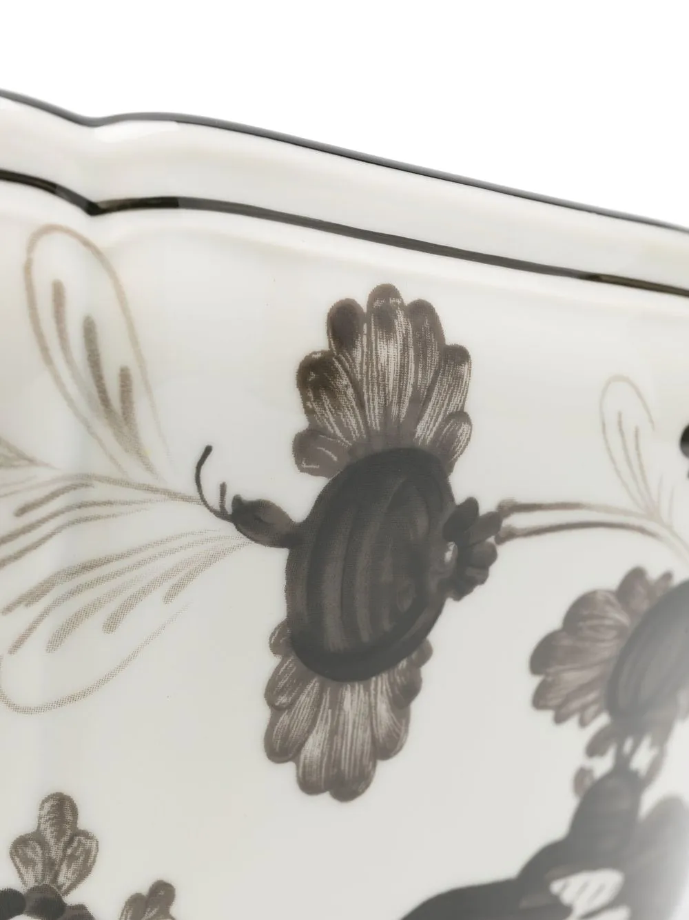 Кремовый, черный, фарфор, глянцевое покрытие и сплошной графичный принт.