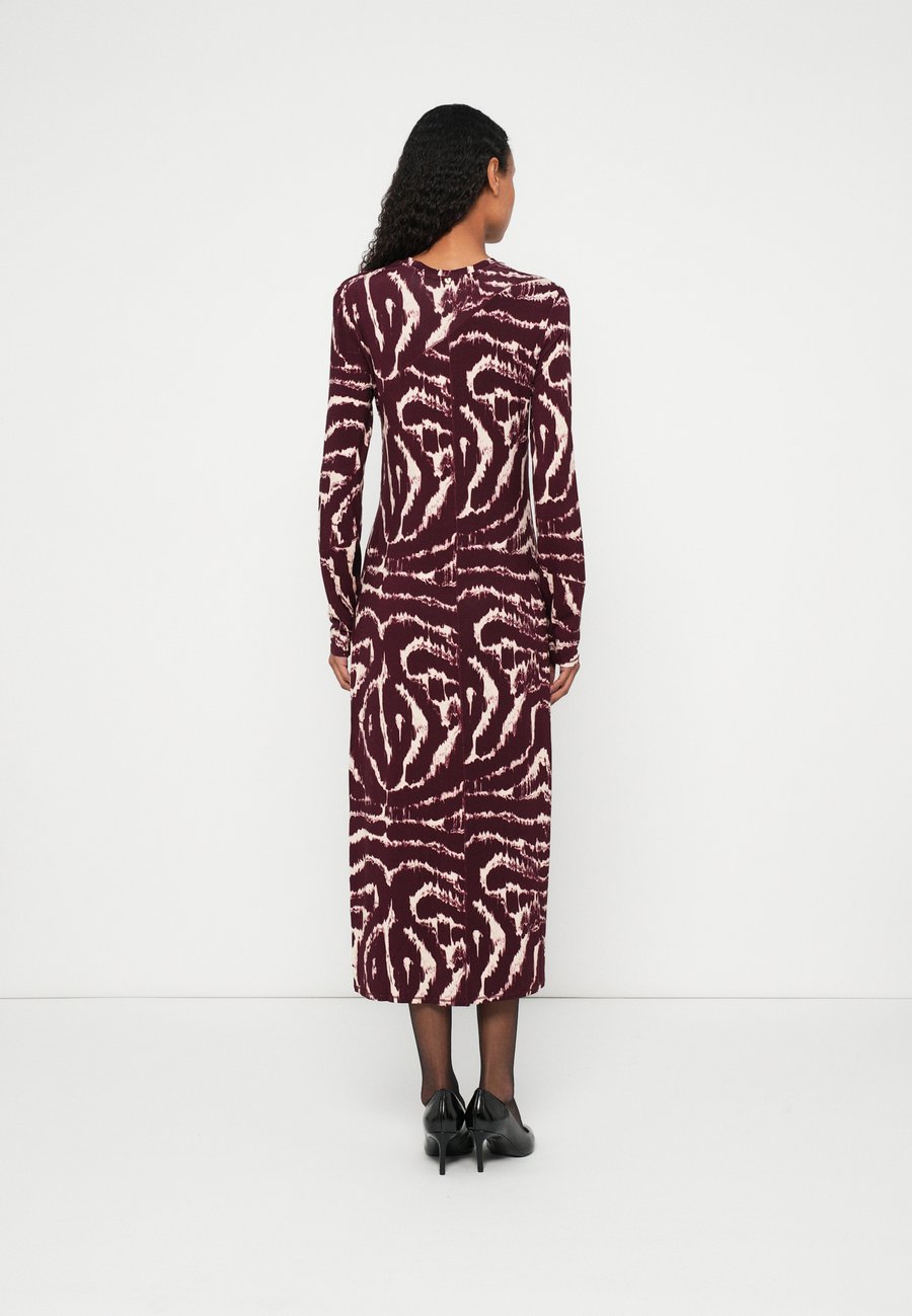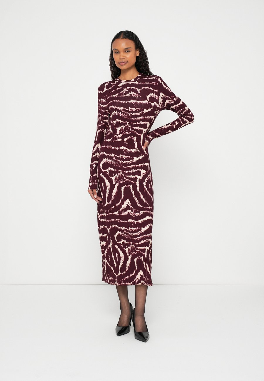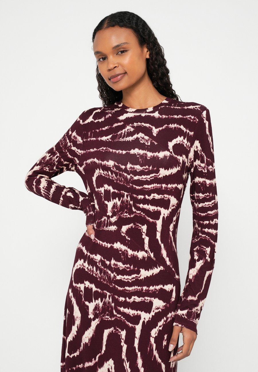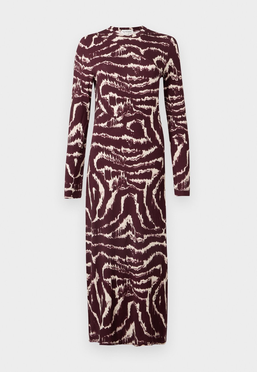 Это платье глубокого бордового и кремового цвета - эффектная вещь, сшитая из мягкой, дышащей ткани, с удачным кроем, что делает его идеальным как для повседневной носки, так и для торжественных случаев. Это платье можно носить как в повседневной жизни, так и дополнить изысканными аксессуарами для элегантного вечернего образа. Вырез: круглыйМатериал и уход