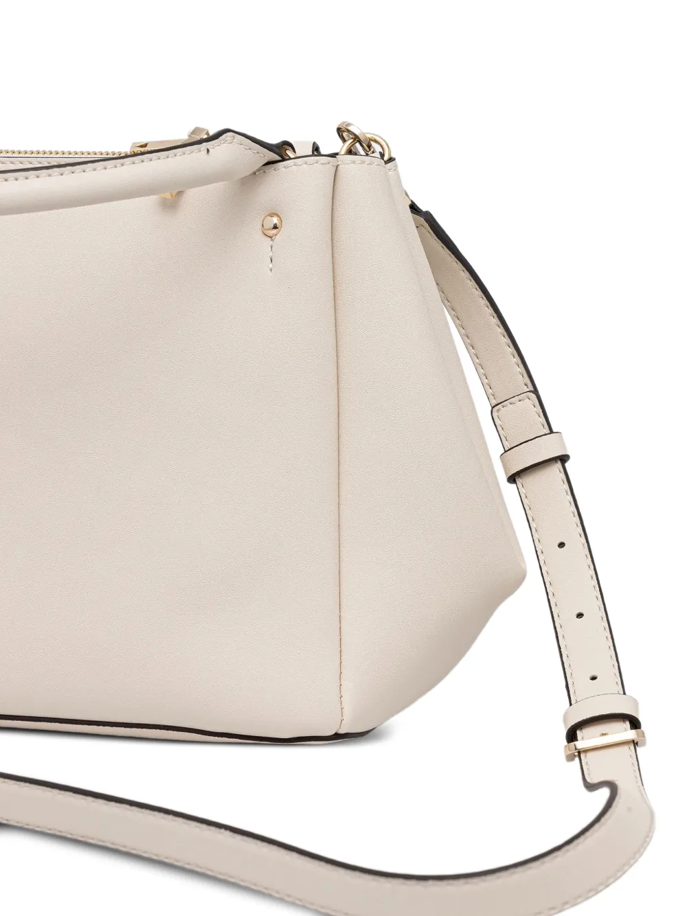 Белая сумка с короткой ручкой, съемным плечевым ремнем, подвеской и нашивкой-логотипом