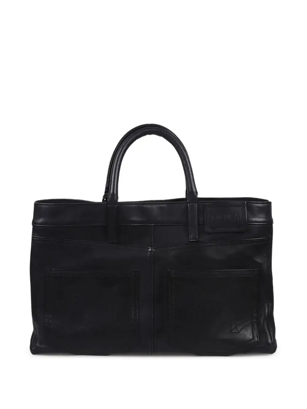 Черные верхние ручки, фурнитура цвета серебра, передние карманы, декоративный брелок, детали с логотипом