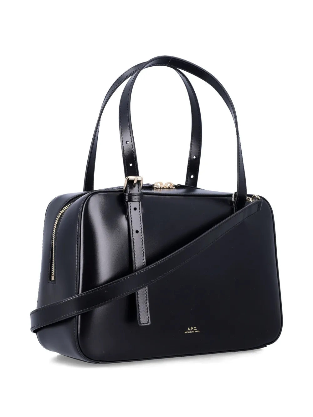 Чёрная верхняя ручка, регулируемый наплечный ремень, застёжка на молнии, фурнитура цвета золота, декоративная пряжка