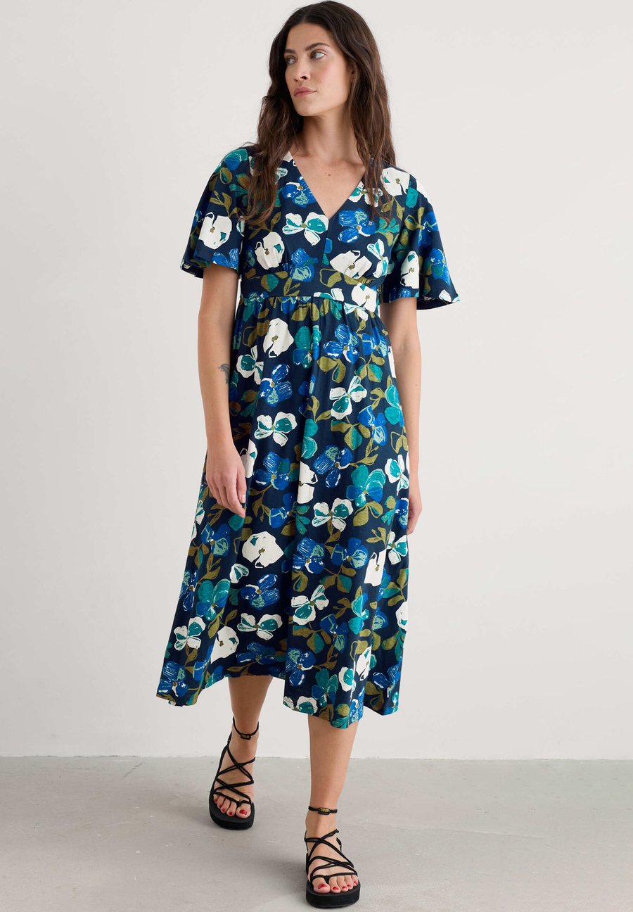 Платье Seasalt Cornwall CHATEAUX HALF SLEEVE, Navy Lamorna Bloom Maritime/Dark-Blue Denim