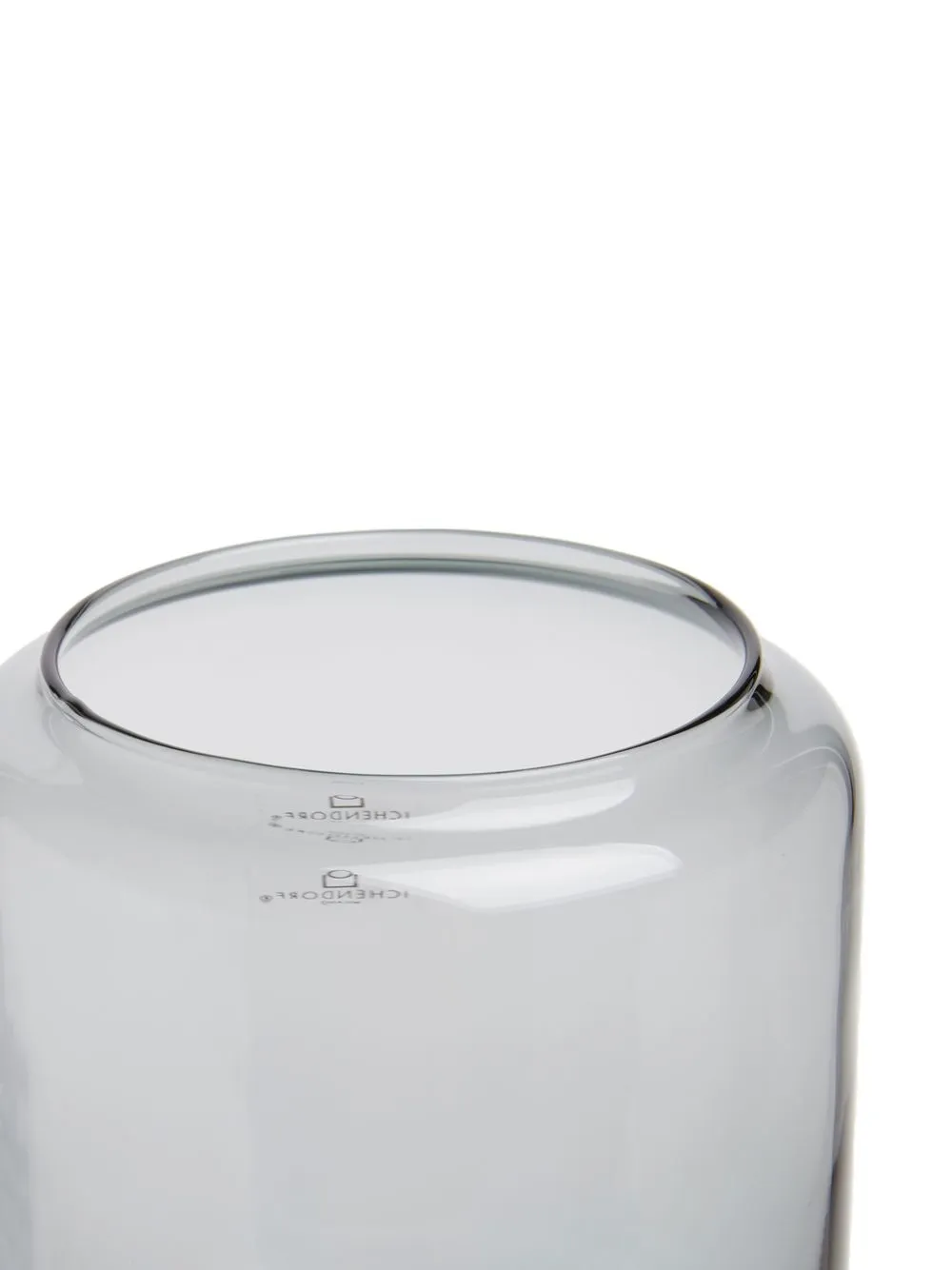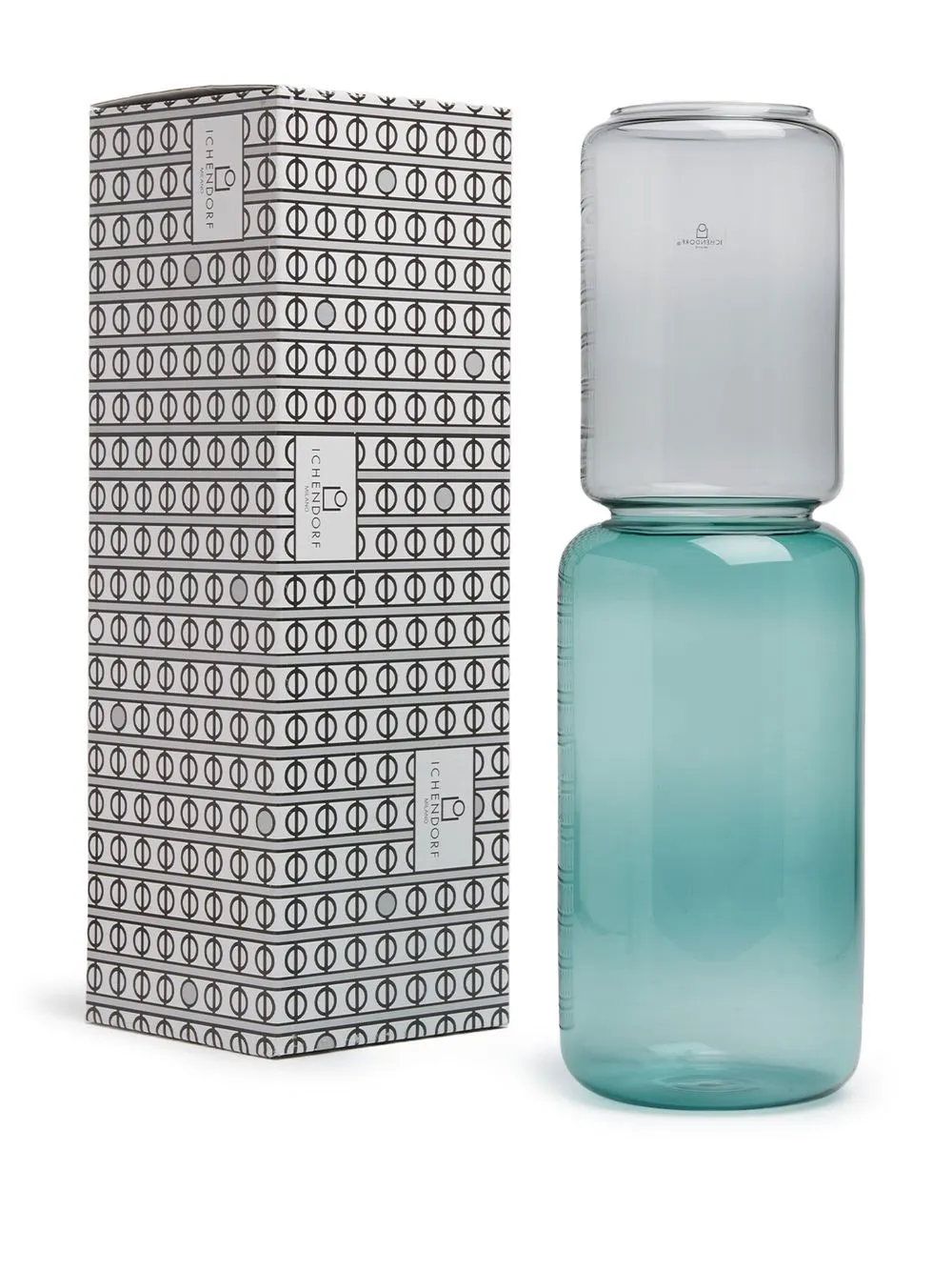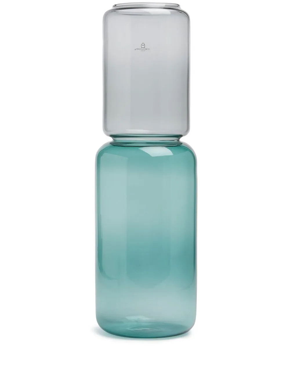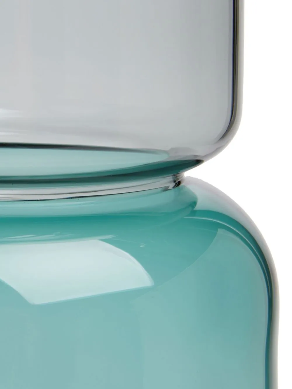 Сине-зеленый, пепельно-серый, стекло, двухцветная деталь, цилиндрический дизайн, дизайн с открытым верхом и прозрачный материал.