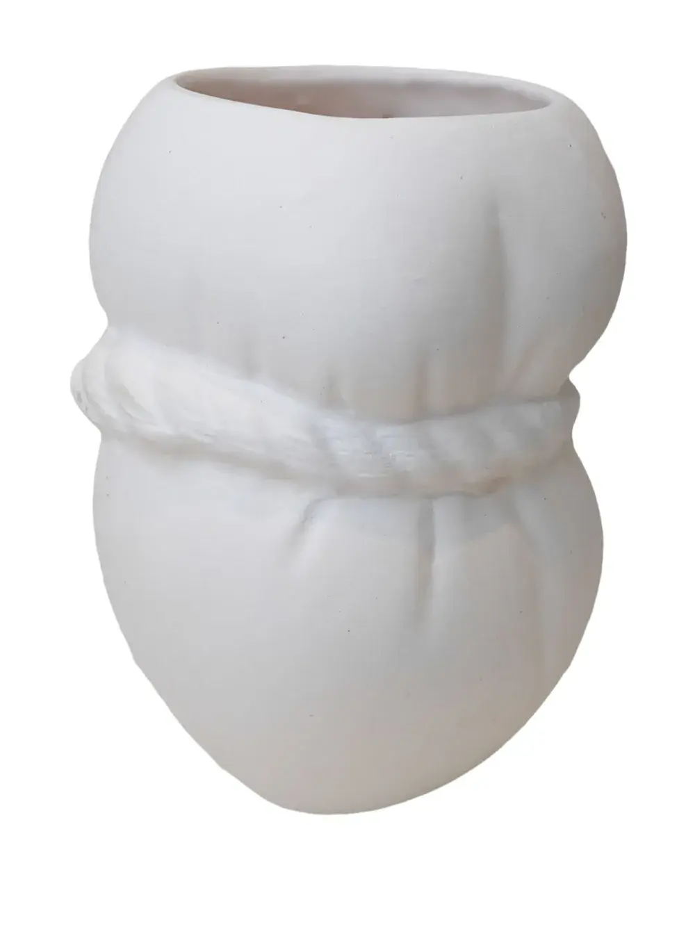 Кремовый, керамика, веревочный декор, плоская кисть и дизайн с открытым верхом.