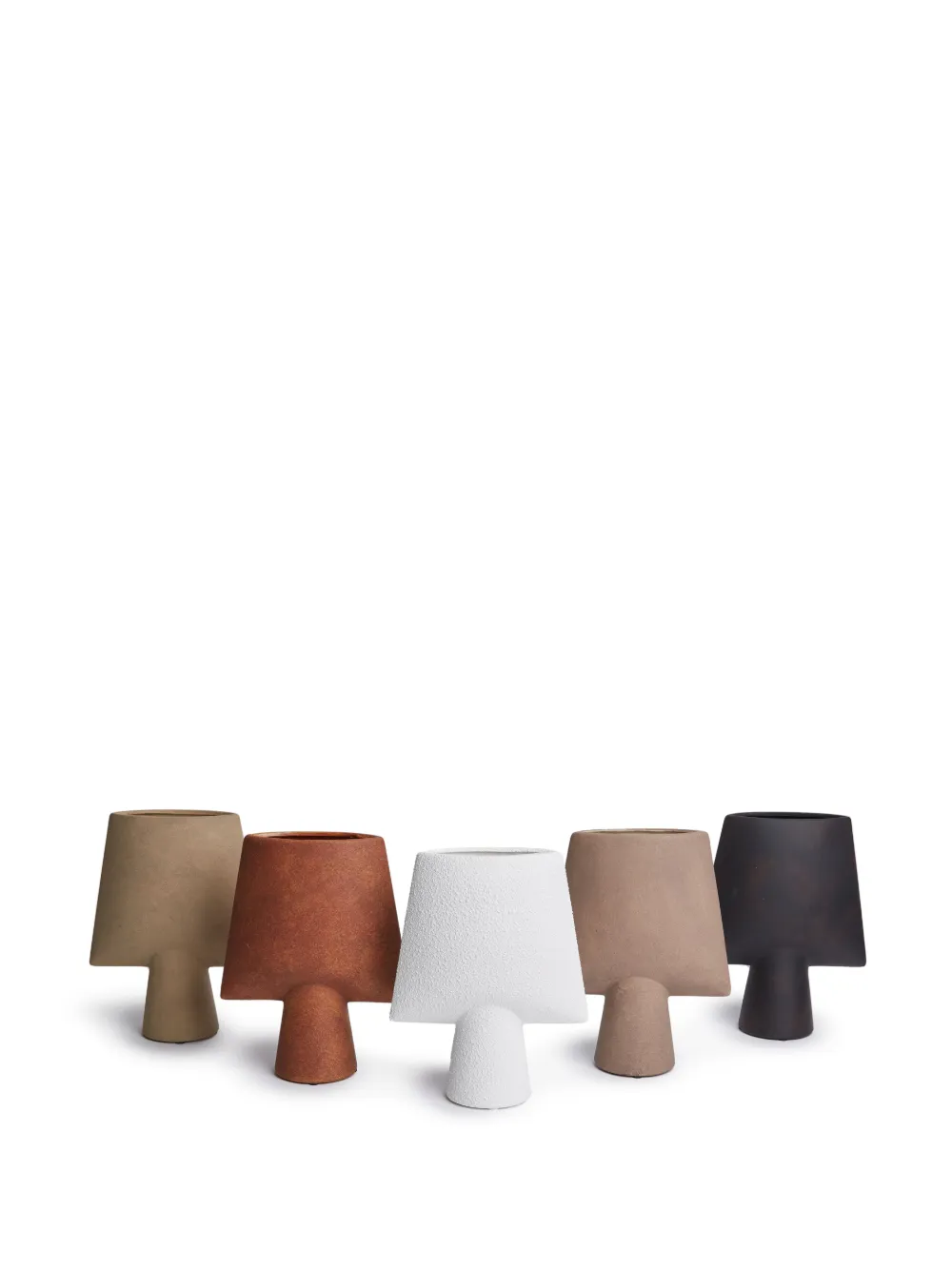Серо-коричневый, керамика, закругленная форма, дизайн с открытым верхом и естественное покрытие.