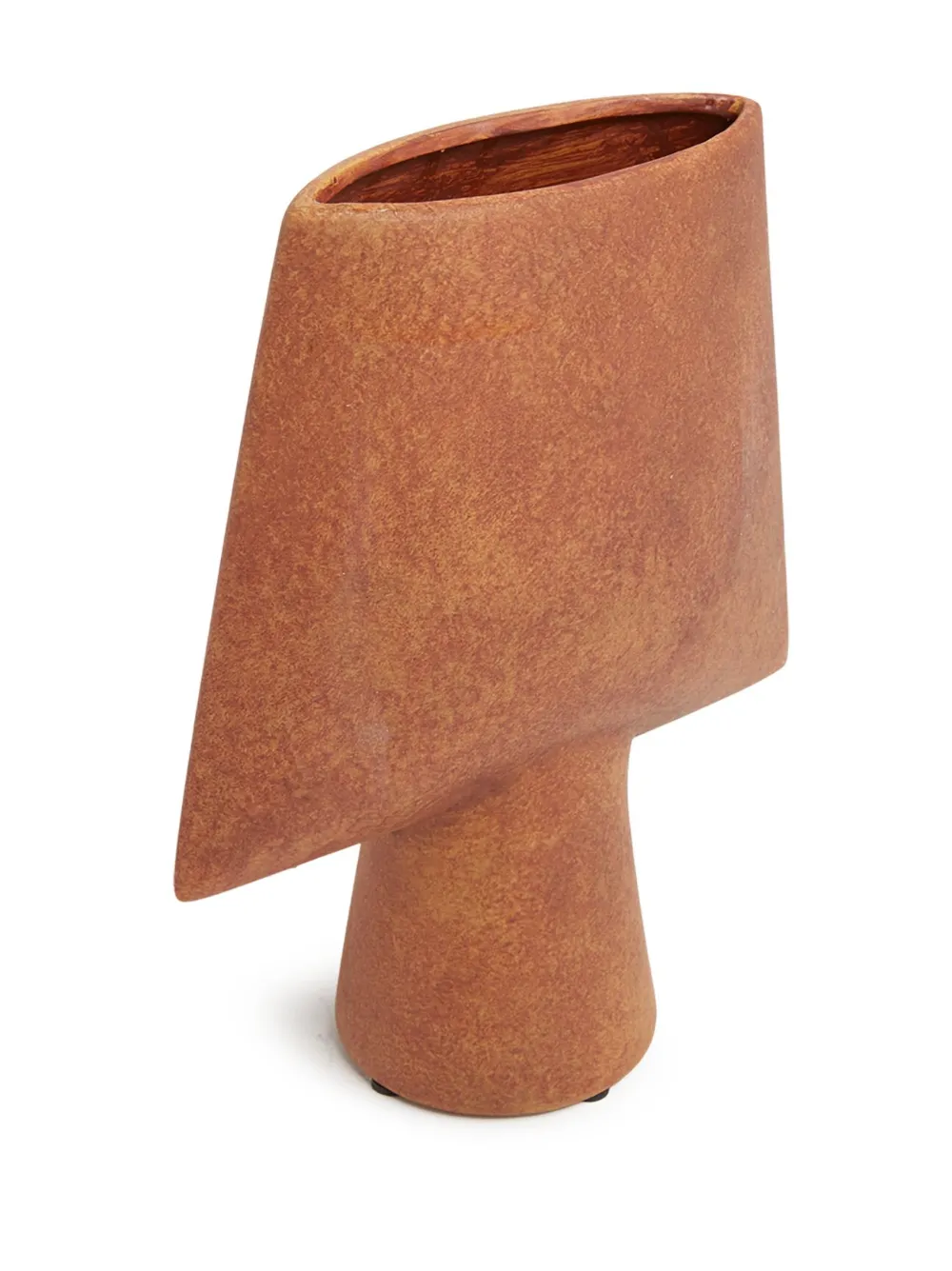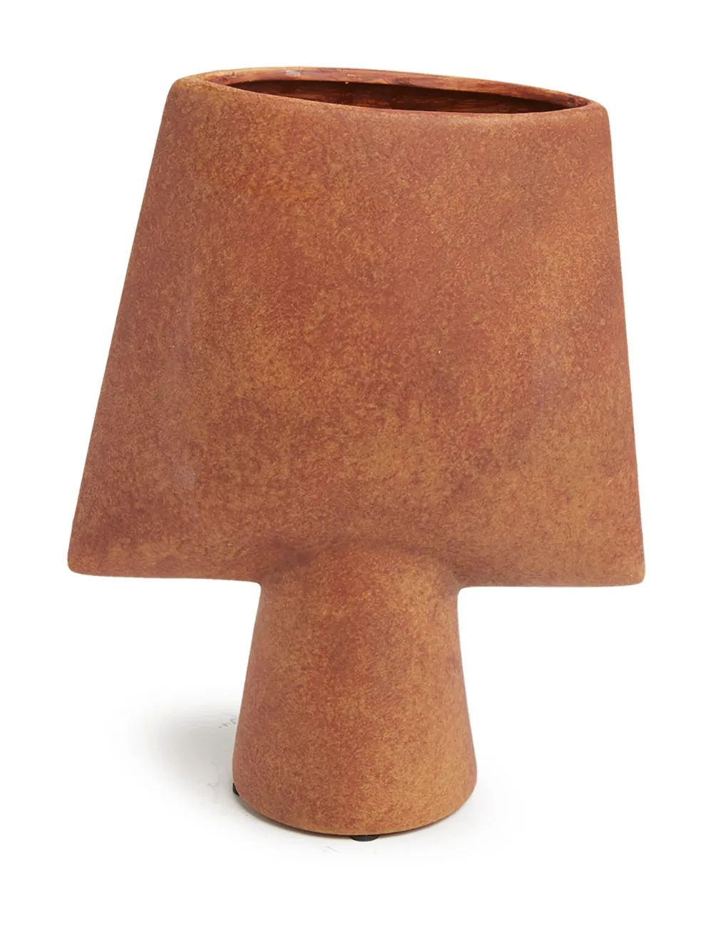 Коричнево-терракотовый, керамика, дизайн с открытым верхом и геометрическая форма.