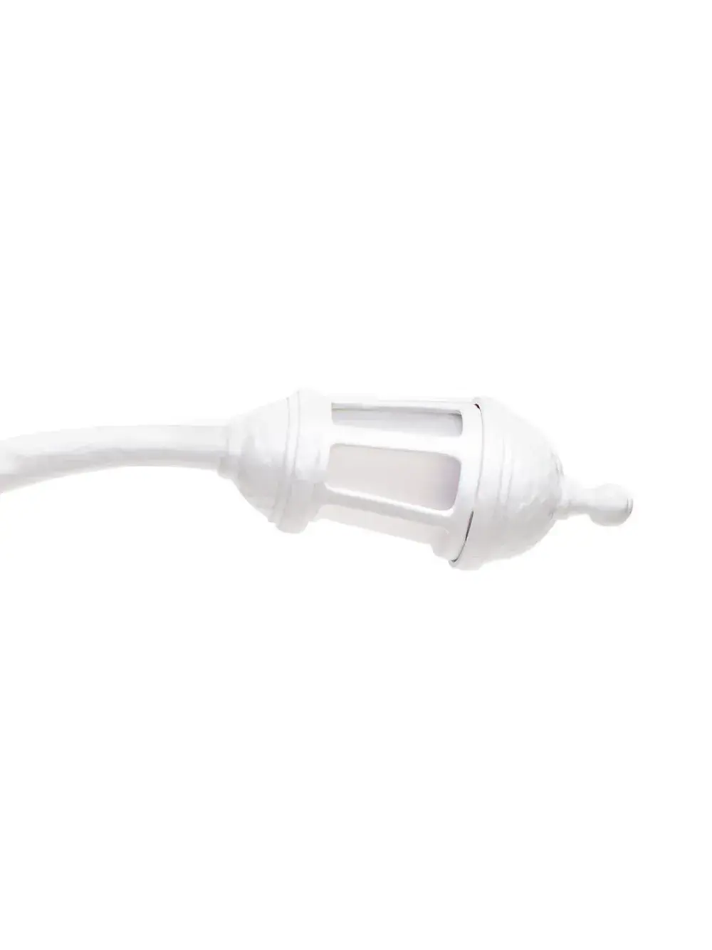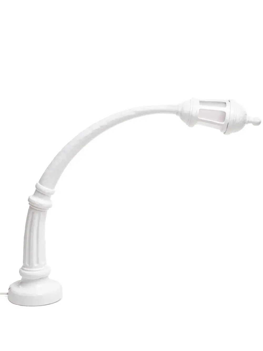 Белый, изогнутая ножка, перекрученная деталь и выключатель.