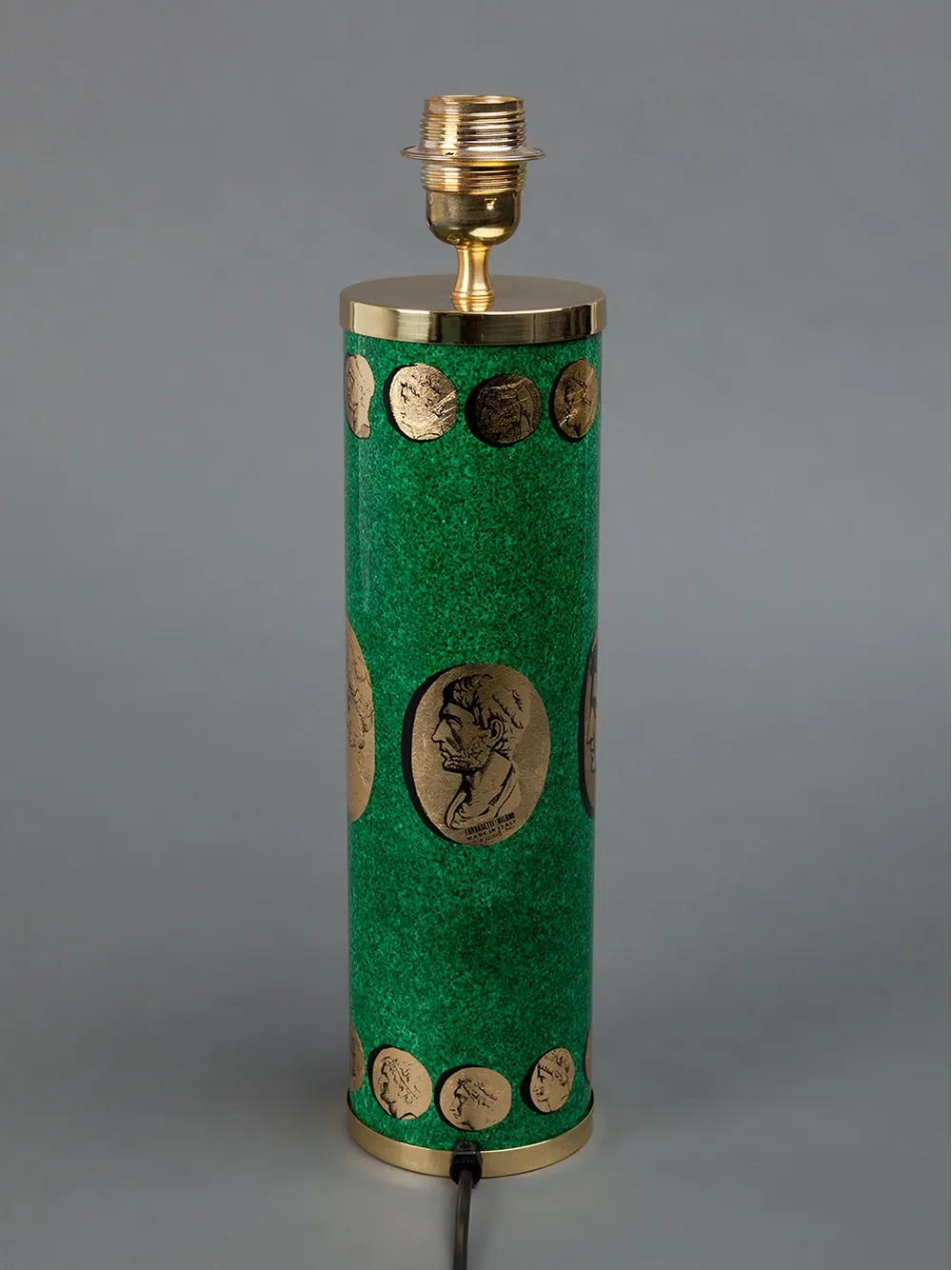 Золотистый с зелёным светильник с камеей от Fornasetti.