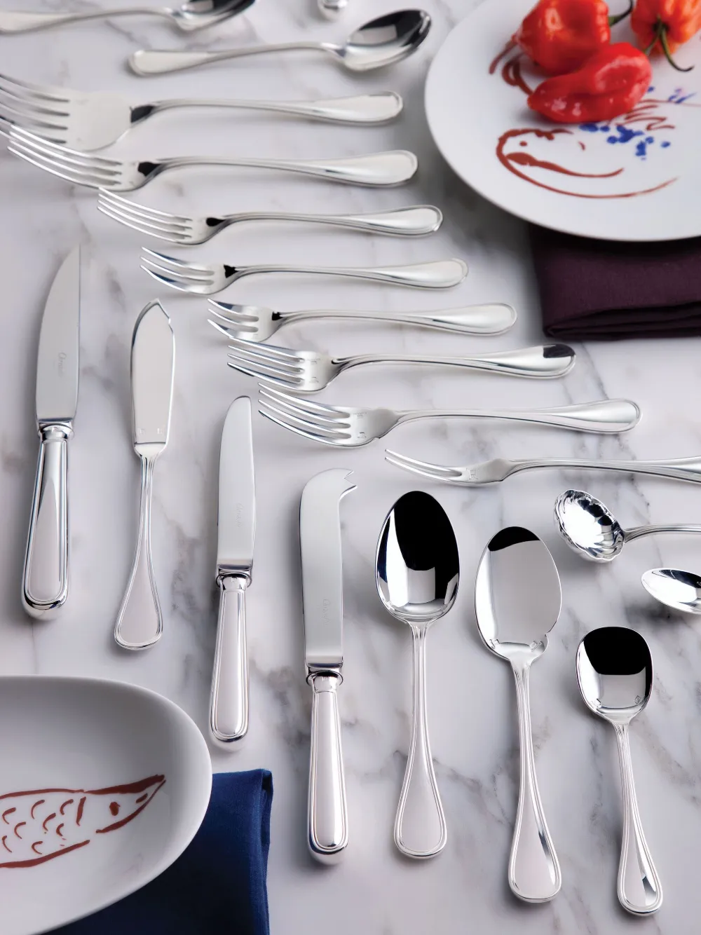 Подробнее о товаре: - серебристый - посеребренный металл - скульптурная ручка - выгравированный логотип - набор на 1 персону - 1 столовая ложка - 1 обеденная вилка - 1 обеденный нож - 1 салатная вилка - 1 чайная ложка - Christofle предлагают использовать специально разработанные чистящие средства, чтобы сделать уход за столовым серебром простым и эффективным. После этого ополосните чистой водой и вымойте как обычно.