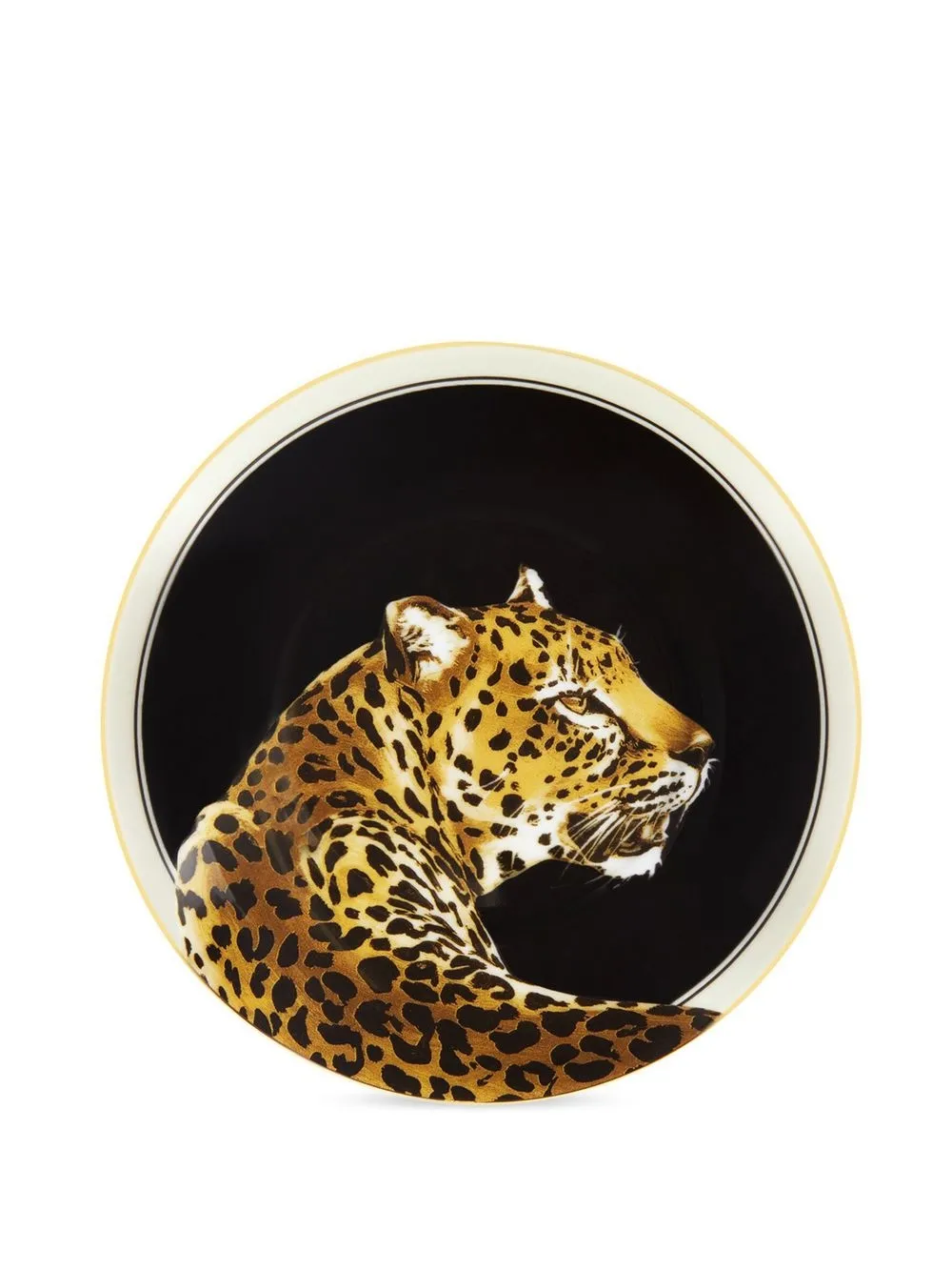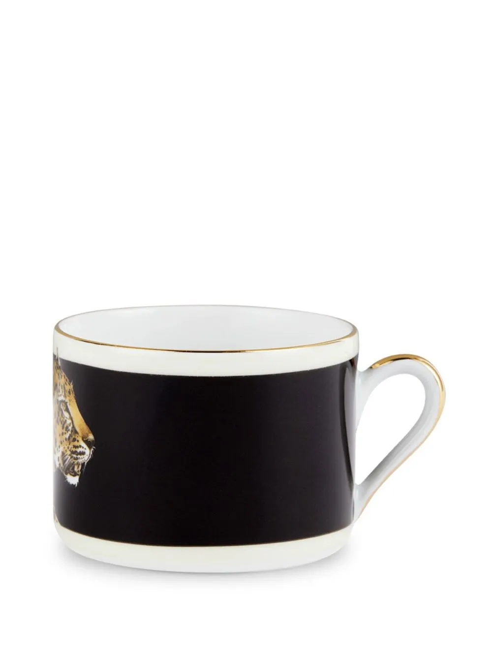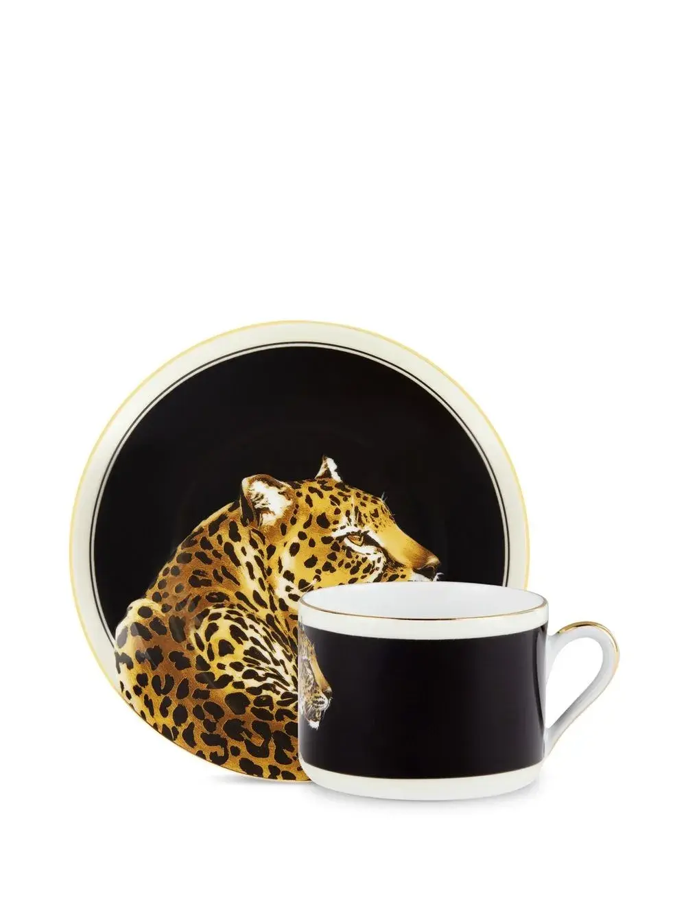 Черный/разноцветный, фарфор, принт с изображением тигра и блюдце в комплементарной расцветке.