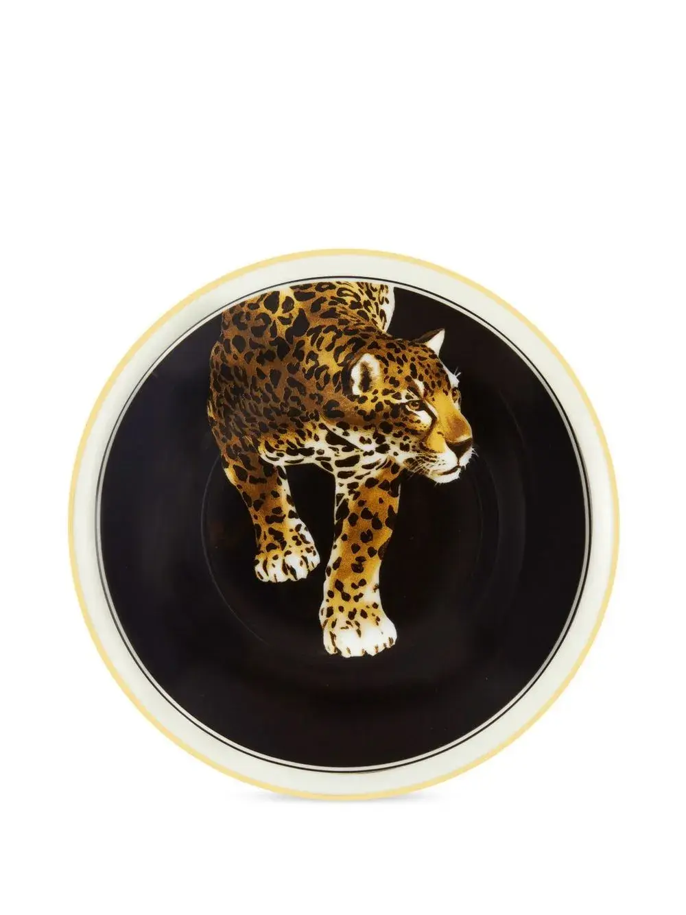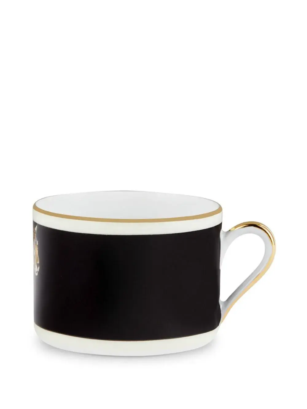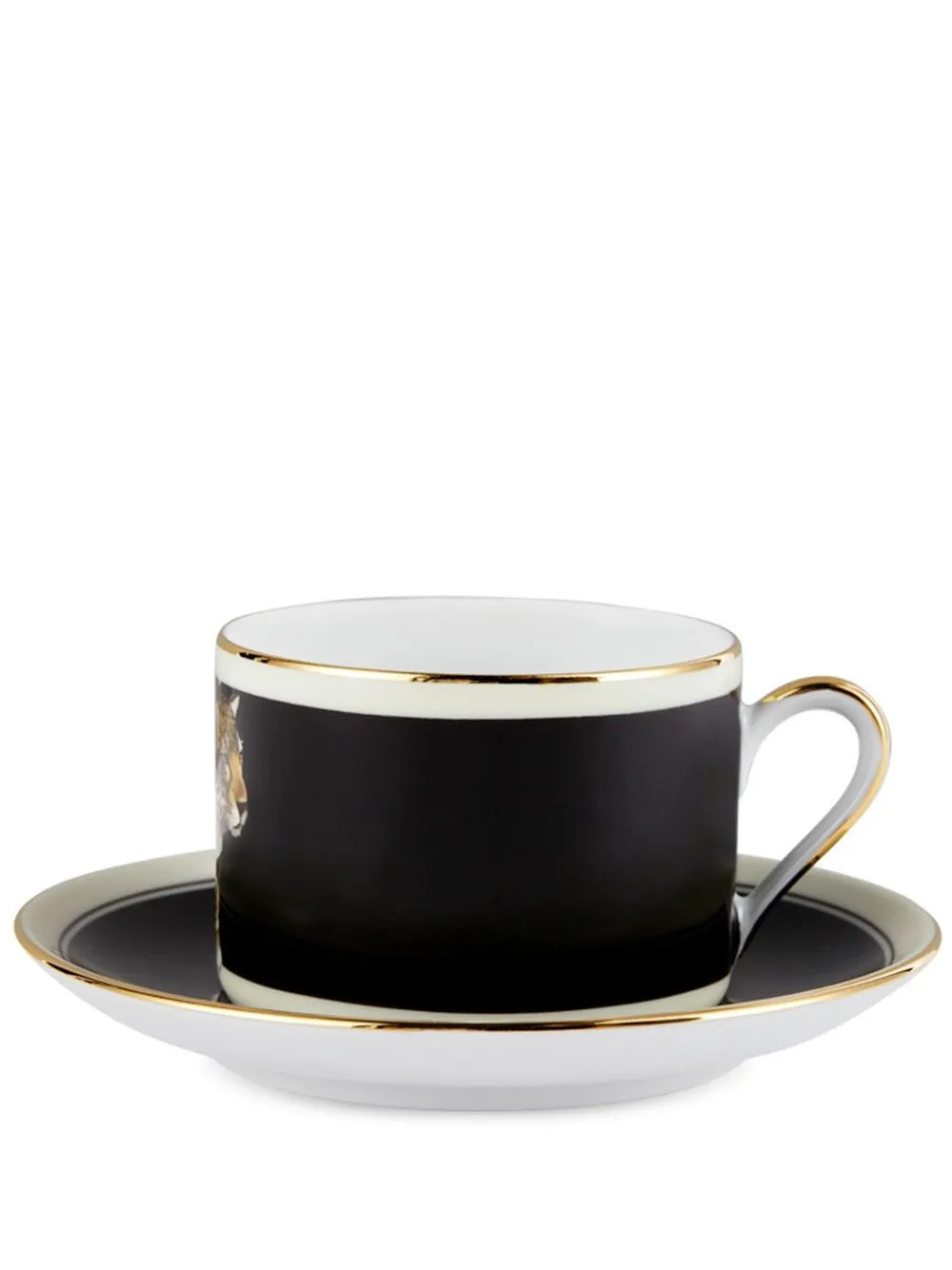 Черный/разноцветный, фарфор, принт с изображением тигра и блюдце в комплементарной расцветке.