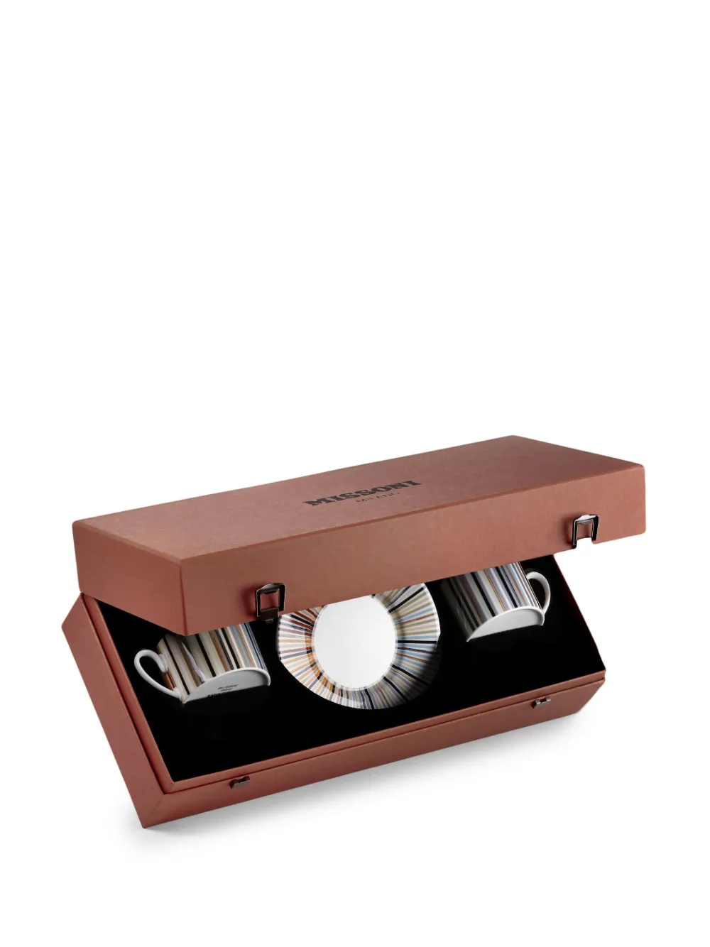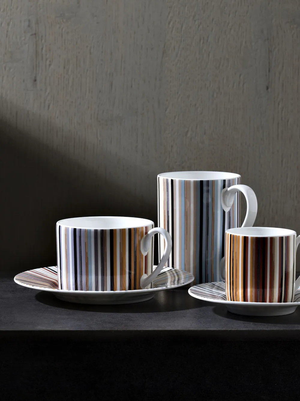 Разноцветный, фарфор, принт в вертикальную полоску, цилиндрический дизайн, дизайн с открытым верхом, круглая ручка, блюдце в комплементарной расцветке и набор из двух предметов. Этот товар доставят в подарочной упаковке. Эта модель, как и другие вещи Missoni, выполнена вручную, поэтому товар может незначительно отличаться от фотографий на сайте.