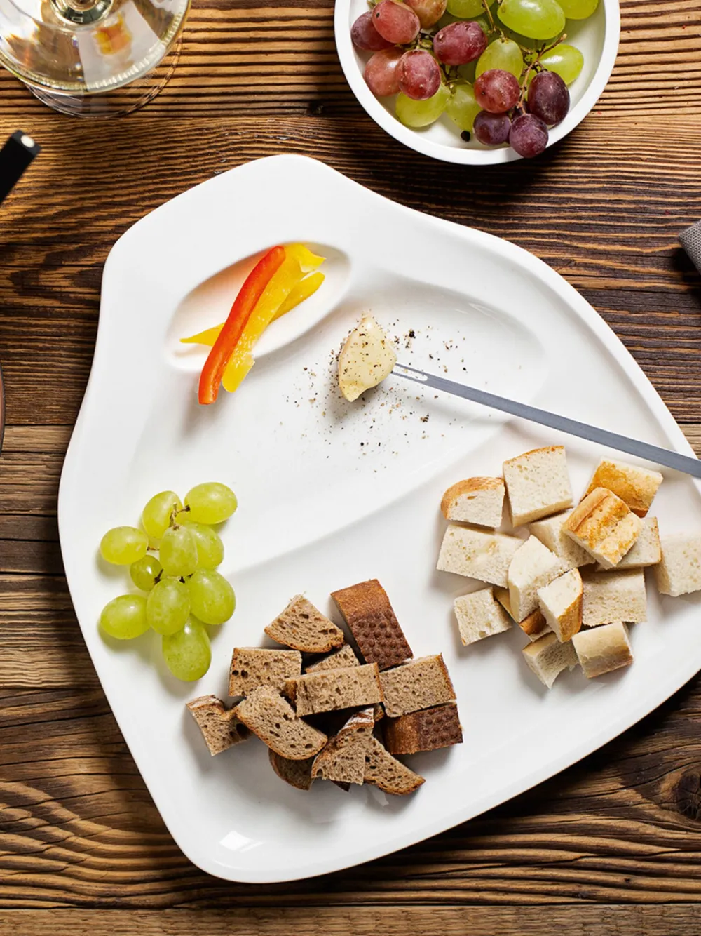 Серовато-белый, фарфор, асимметричная форма, гравировка и набор из двух предметов.