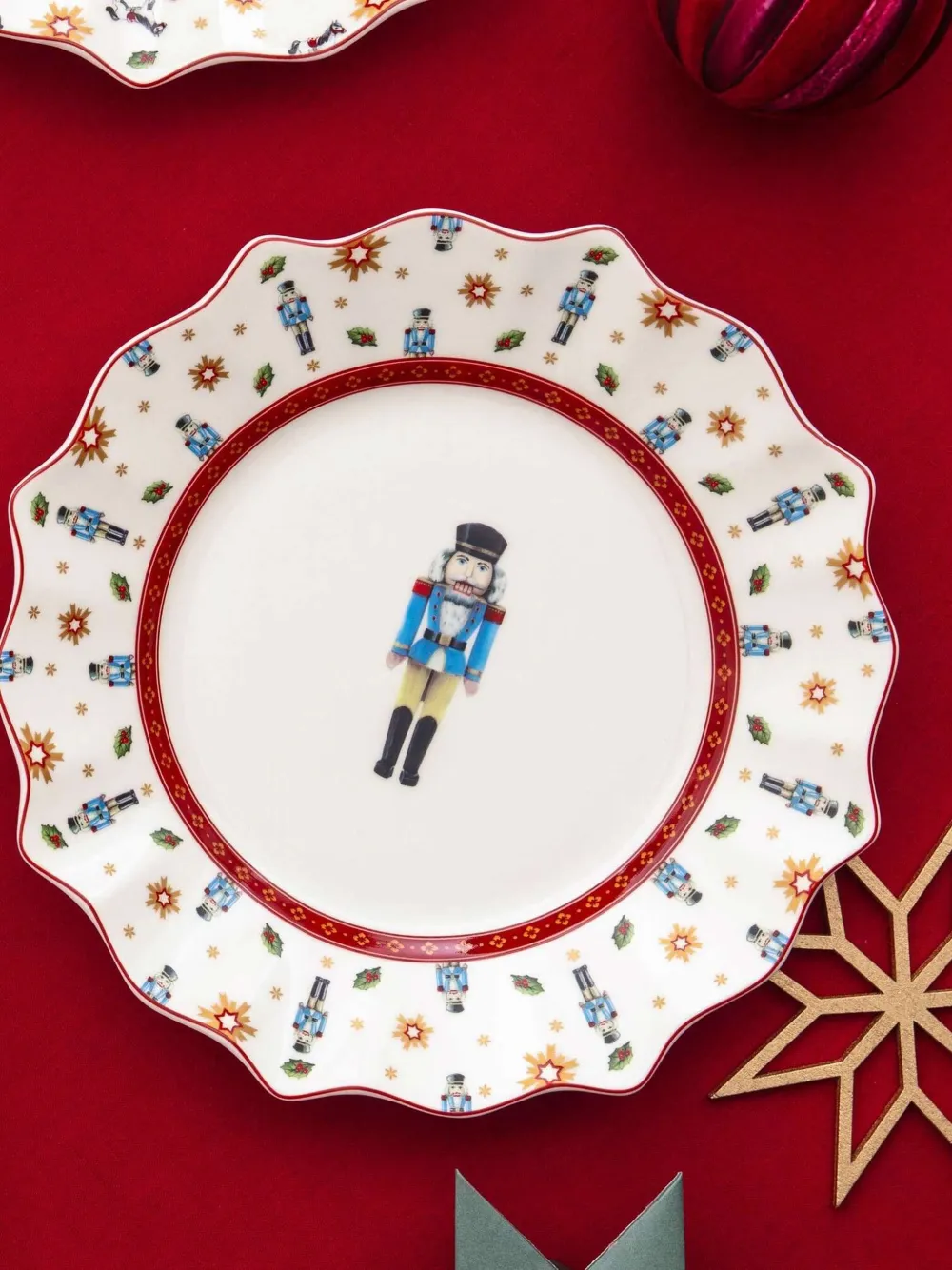 Белый декор с изображением щелкунчика фигурный край красная кайма набор из 6 штук