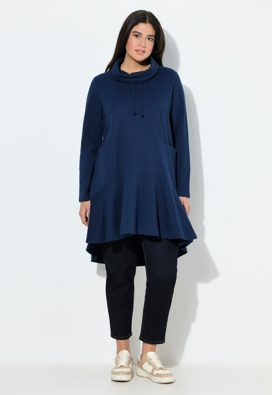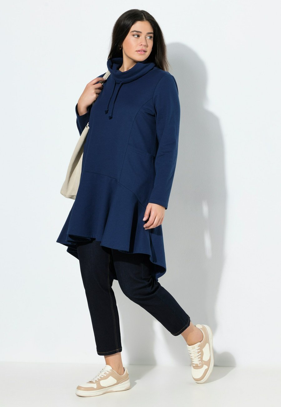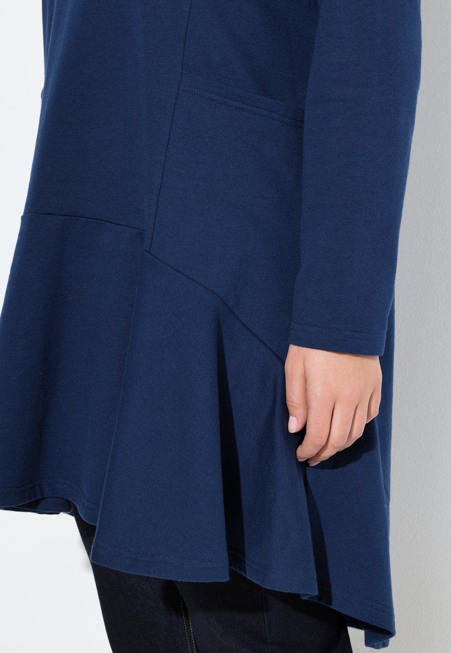 Платье-свитшот с воланами. С декоративными швами и асимметричными воланами для создания структурированного силуэта. Широкий воротник-стойка со шнурком. Формирующие рельефные швы. Длинные рукава. Два накладных кармана. Асимметричный подол с воланами. Инструкции по уходу: Не сушить в сушильной машине, машинная стирка. Воротник: Воротник-стойкаМатериал и уход