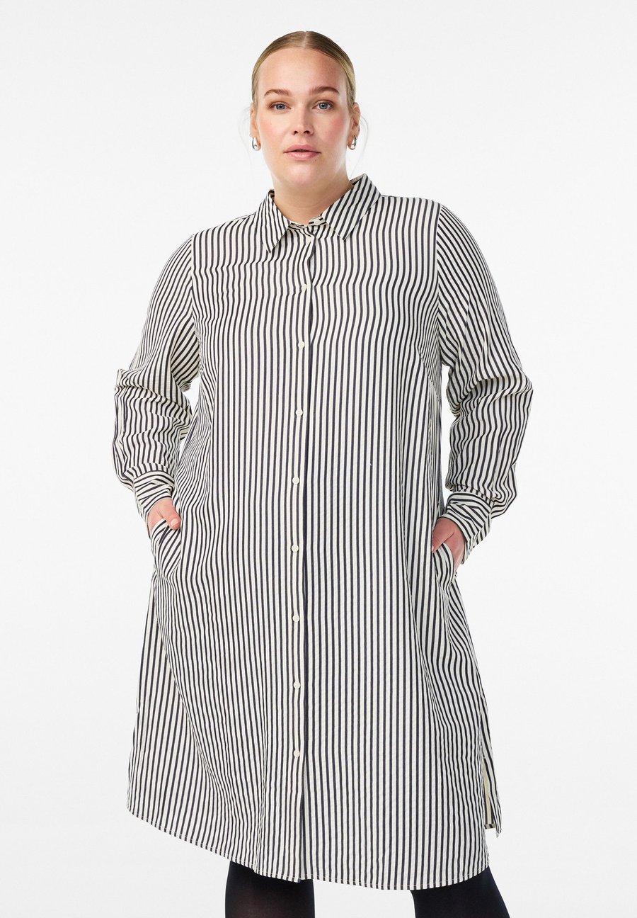 Платье Zizzi Shirt dress, Black White Stripe/Black