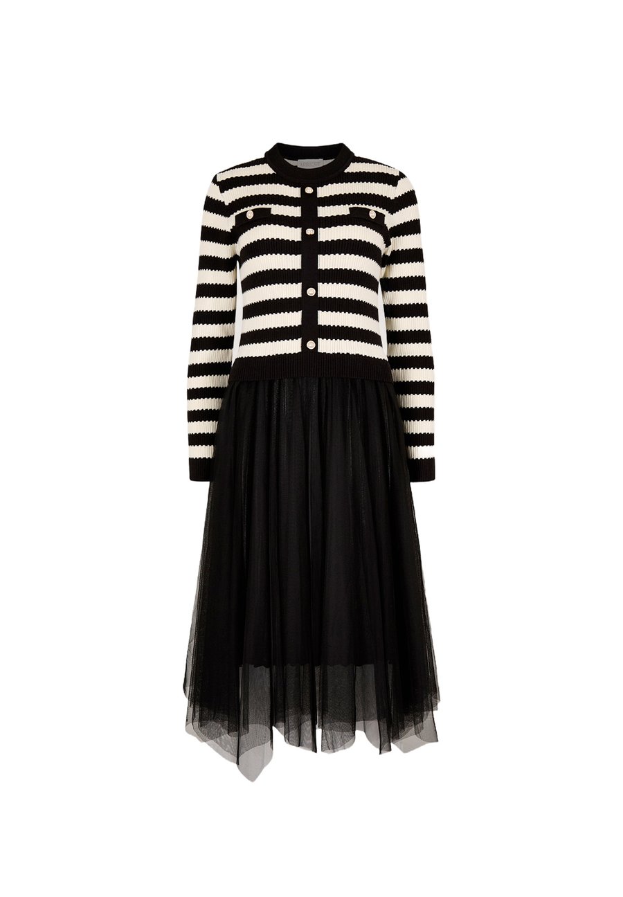 Это универсальное платье миди позволяет создать образ 2 в 1, не требующий особых усилий при выборе одежды. Платье выполнено из мягкого ребристого трикотажа с классическими полосками и декоративными пуговицами, а также контрастной юбки из тюля с подкладкой для комфорта. Вырез горловины: круглый. Карманы: нагрудный. Узор: полосатый. Детали: декоративные пуговицы, стразы, нижняя юбка, кайма. Материал и уход: 50% вискоза, 30% нейлон, 20% акрил. Материал нижней части: 100% полиэстер. Подкладка: 100% полиэстер. Ткань: тюль, ребристая. Инструкции по уходу: не отбеливать, не сушить в сушильной машине, машинная стирка при 30 °C. Размер и посадка: стандартная. РасклешенныйДоставка товаров осуществляется курьером или на пункт выдачи заказов.