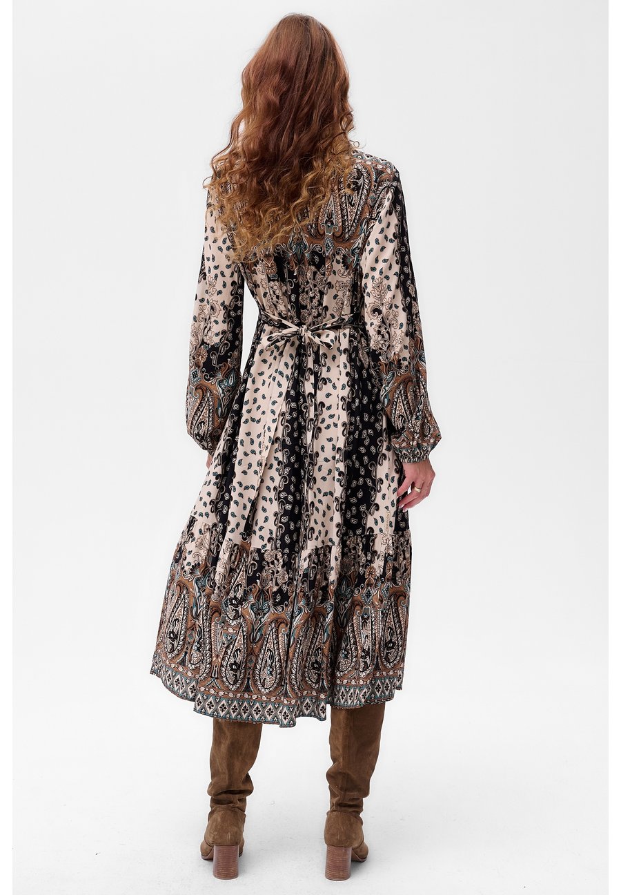 Платье Alani Длина миди Стиль стандартный Вырез V-образный Рукава длинные Польский продукт Состав 100% вискоза Рост модели 177 см Размер 36Таблица размеровТкань - измерено в разложенном видеРазмер 36 38 40 42 44 46 48Обхват груди 90 94 98 104 108 112 116Обхват талии 82 86 90 94 98 102 106Обхват бедер 110 114 118 122 126 130 134Длина рукава 62 65 66 66 66 66 67Длина спинки 125 126 126 127 130 131 132Длина спереди 125 126 126 127 130 131 132Узор: ПейслиМатериал и уход