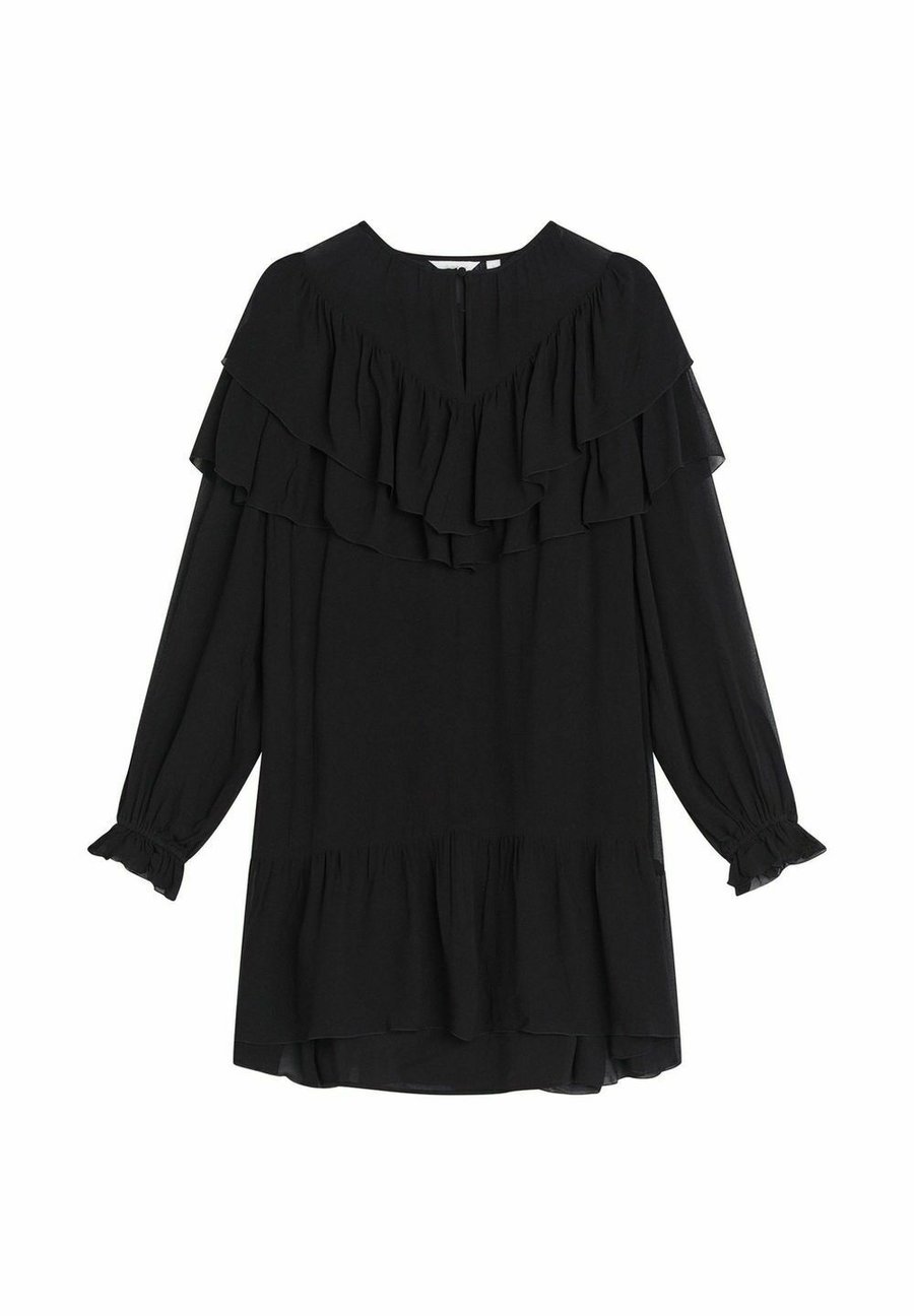 Платье Lissaboa от Dobber - это легкое и воздушное шифоновое платье объемного кроя с женственными оборками. Оно имеет рукава-фонарики с эластичными манжетами, круглый вырез горловины, застежку на пуговицы спереди и поставляется со съемной нижней юбкой. Идеально подходит для вечеринок или элегантных повседневных образов. Вырез: КруглыйМатериал и уход