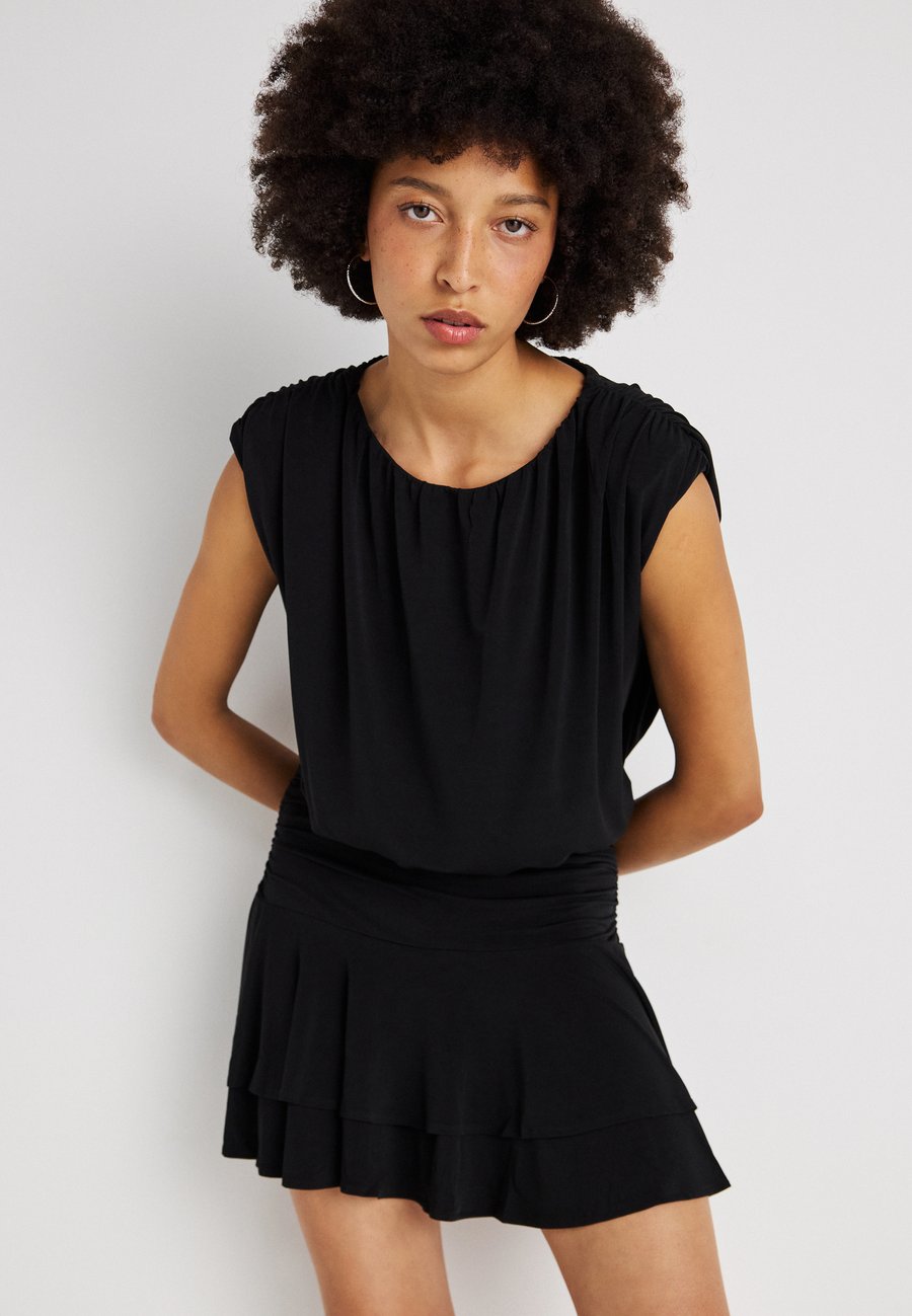 Эластичная талия. Вырез горловины: круглый.Материал и уход