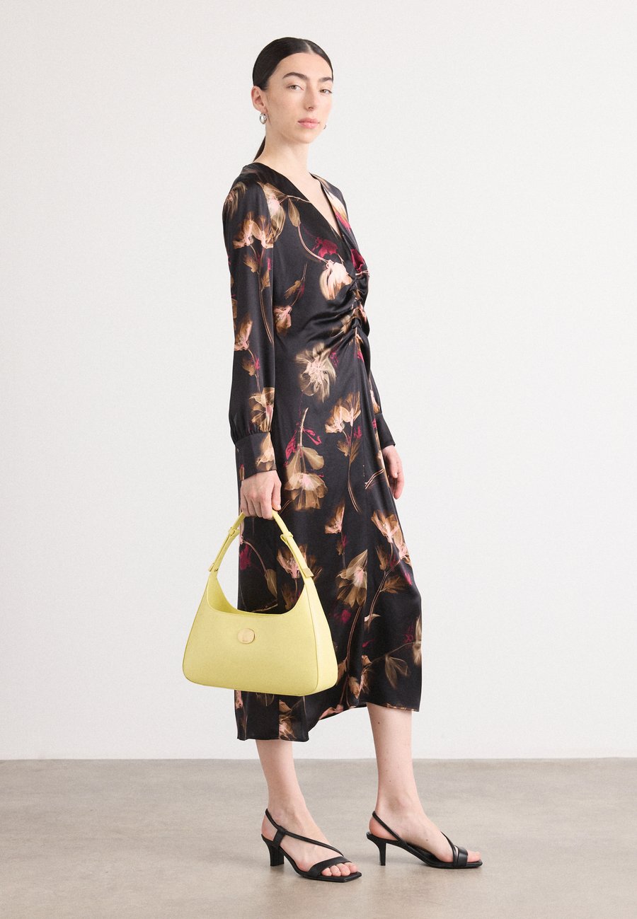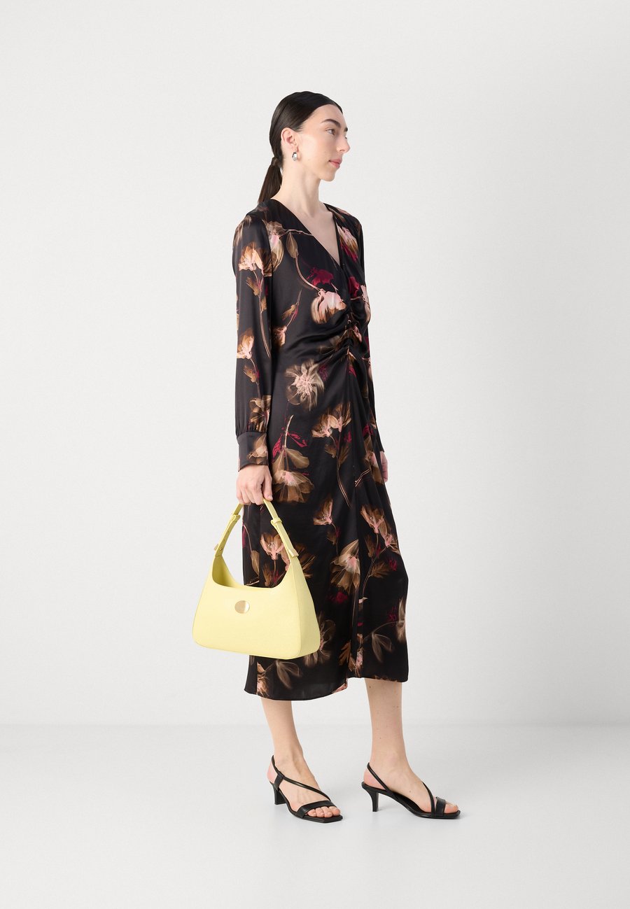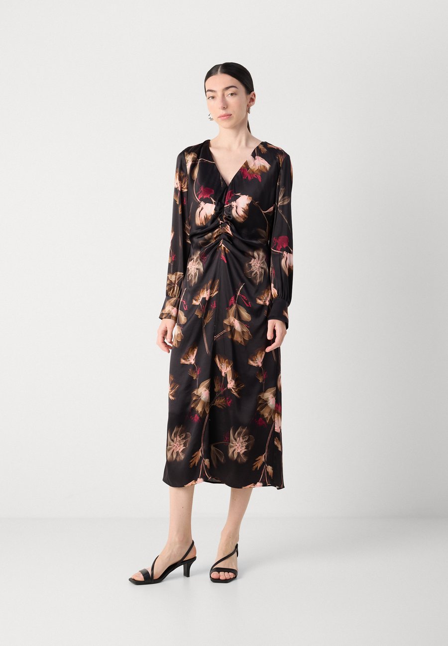Эластичная сборка в области талии. Вырез: V-образный.Материал и уход