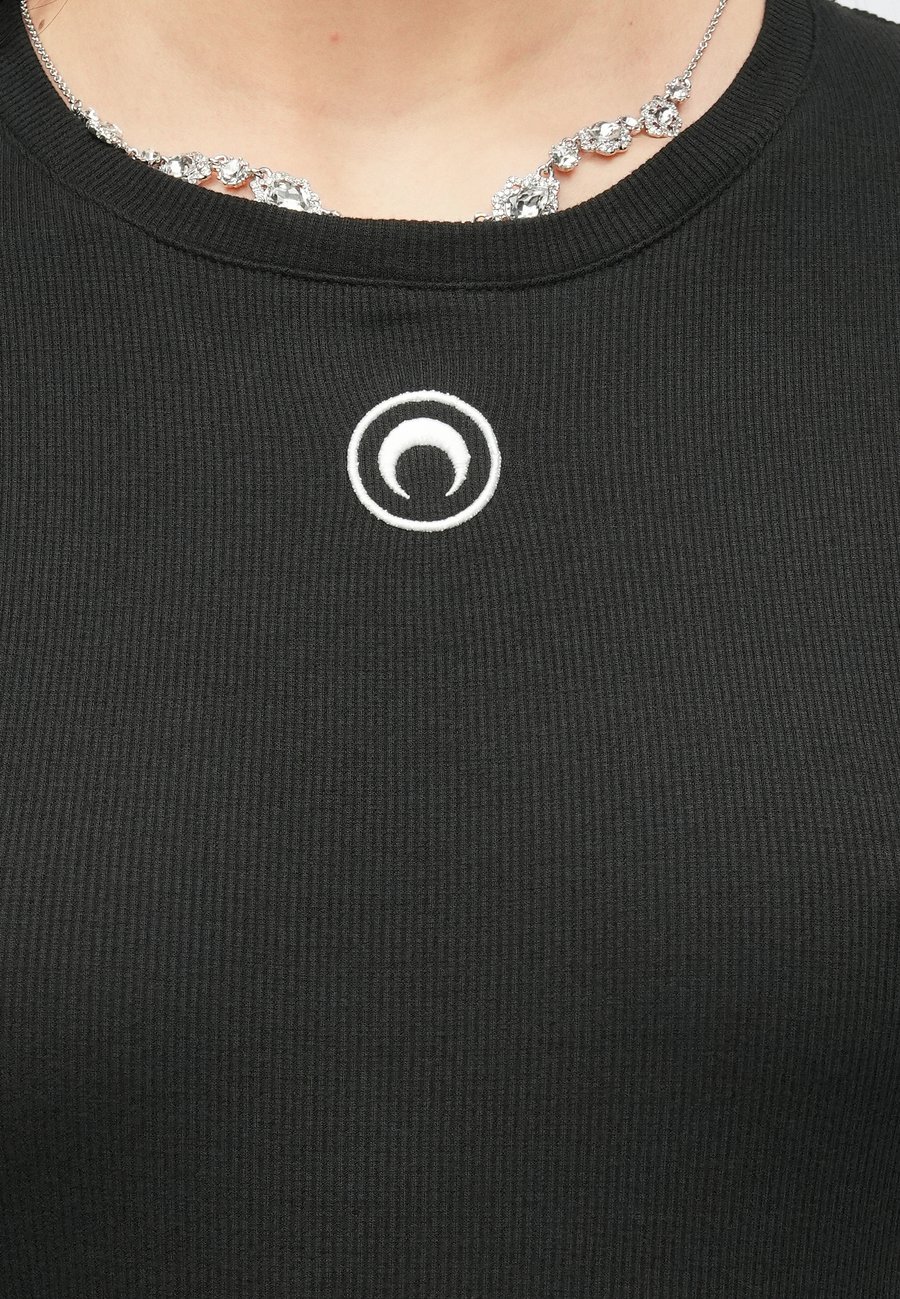 Небольшая этикетка-флажок на уровне груди. Вырез горловины: круглый.Материал и уход